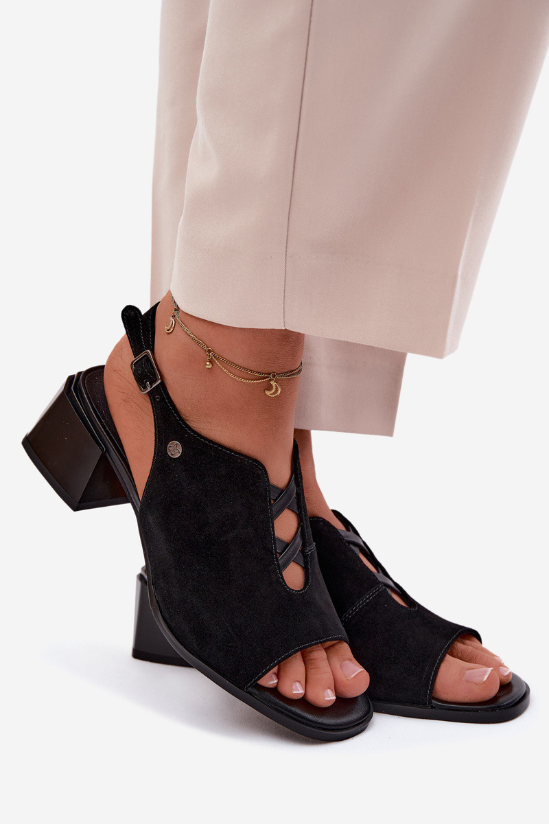 Maciejka Suede Leather Sandals with Heel K7521-01 Black
