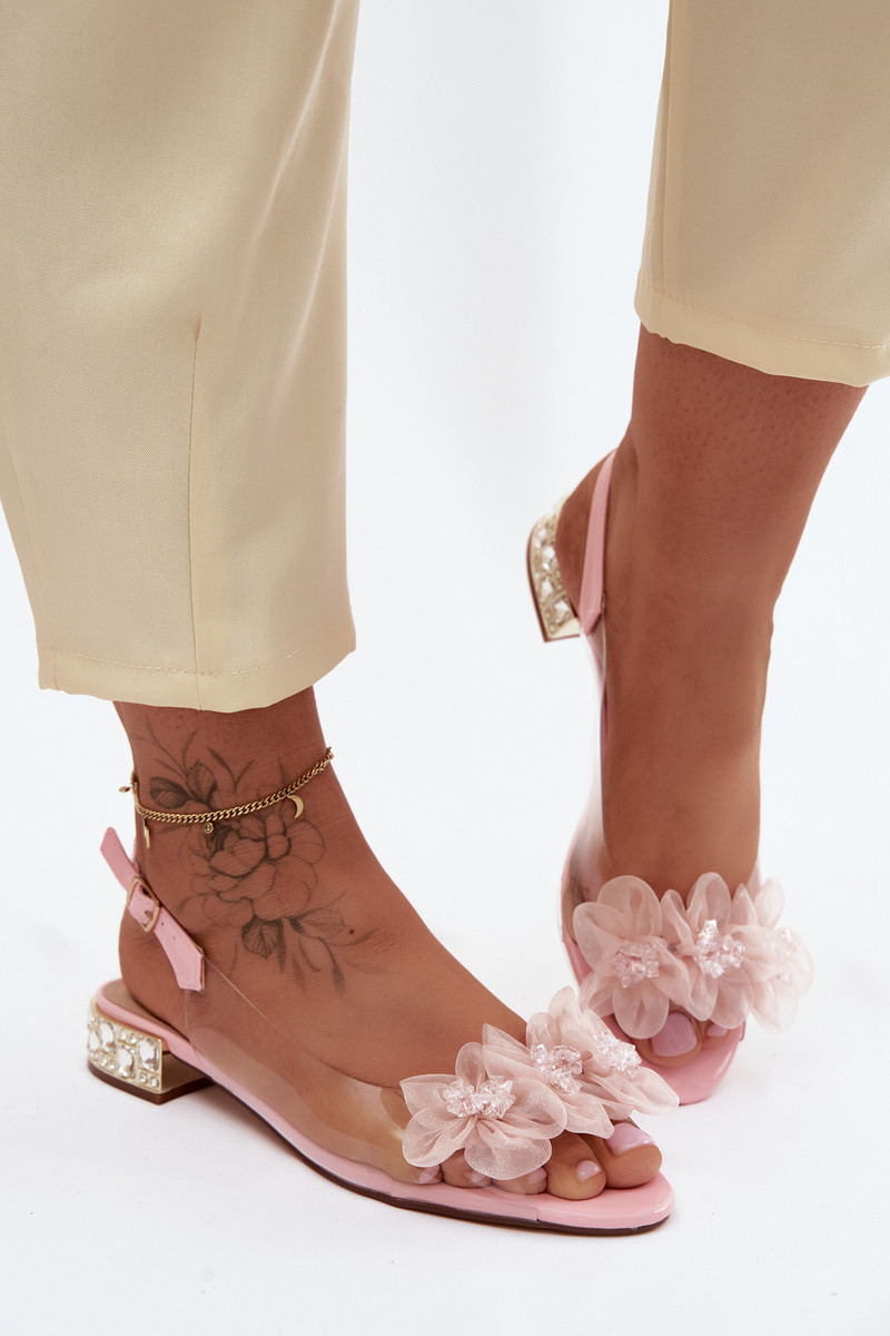 Transparent sandals with sparkling gems and mesh floral motifs D&A MR61-9006 pink