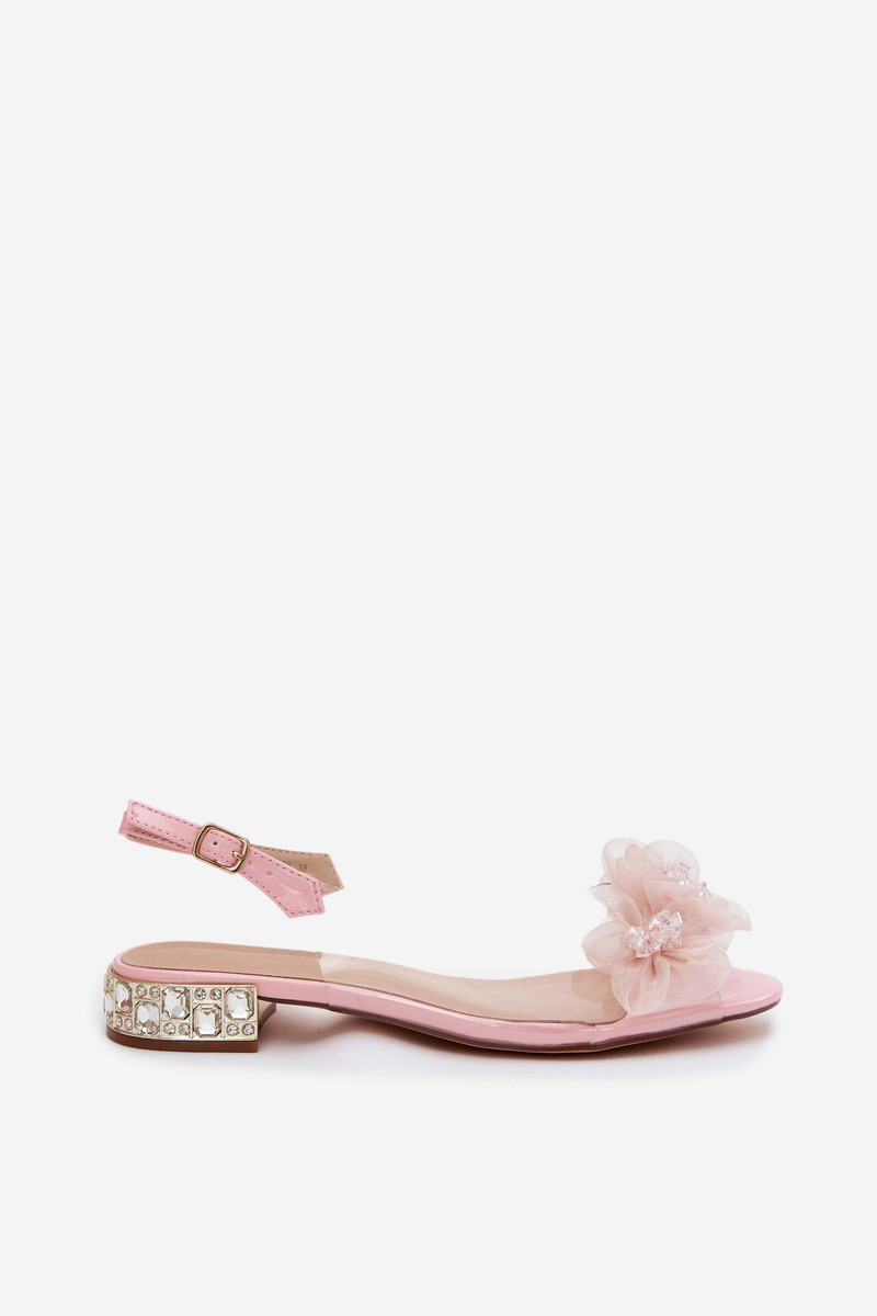 D&ATransparent sandals with sparkling gems and mesh floral motifs D&A MR61-9006 pink