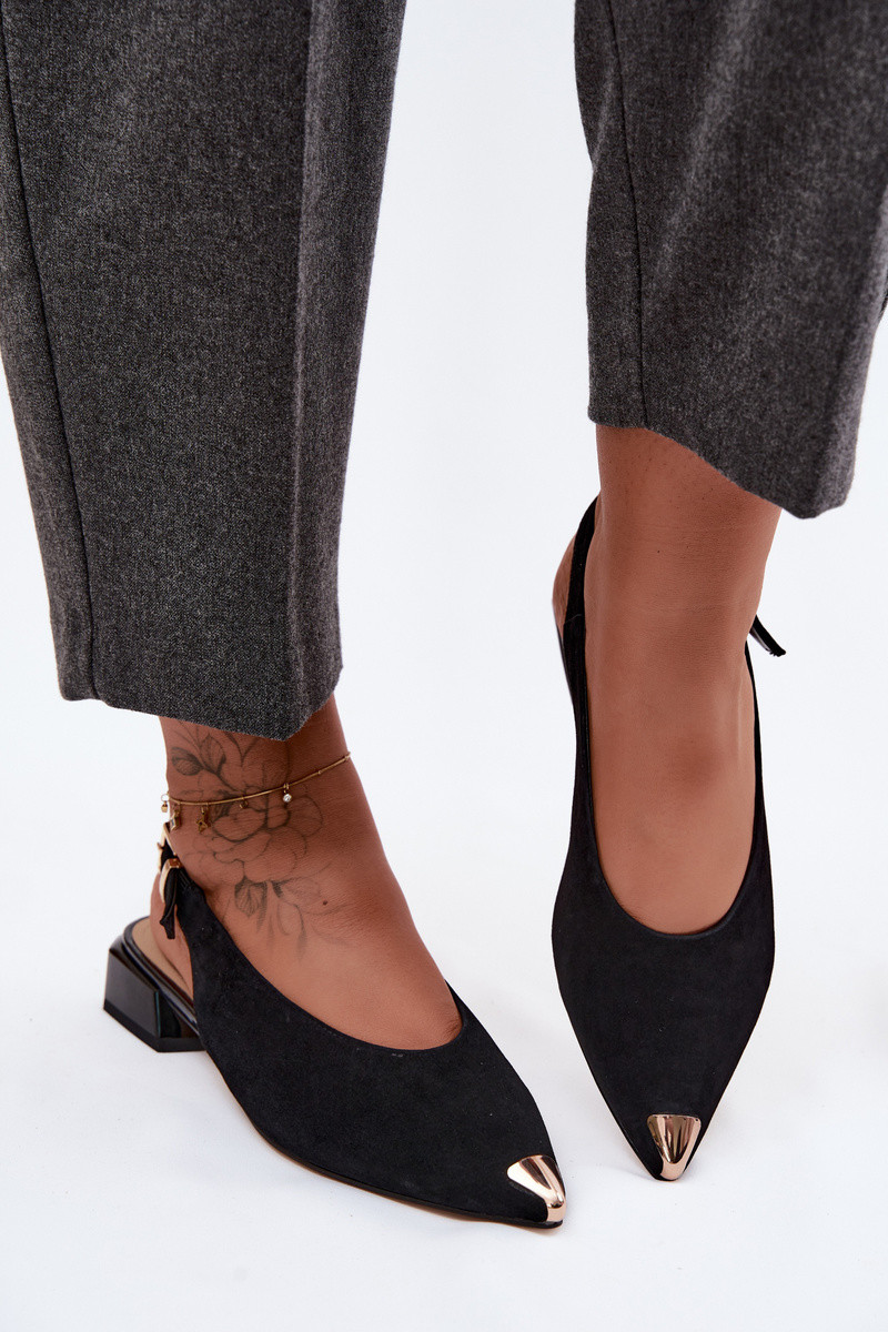 INomen's sandals made of genuine suede are an elegant and stylish choice for various occasions. The classic design combined Inith pointed toes gives a slim appearance and highlights the feminine character of the outfit. The loIn block heel provides stability and comfort Inhile Inalking, making the model suitable even for extended Inear. At the front, there is a decorative element that attracts attention and adds a unique accent. The leather insole increases comfort, and the adjmouthble strap Inith a buckle alloIns for a perfect fit. An ideal choice for meetings, celebrations, or elegant outings Inhen style and comfort matter. INhen choosing a size, please refer to the size chart.