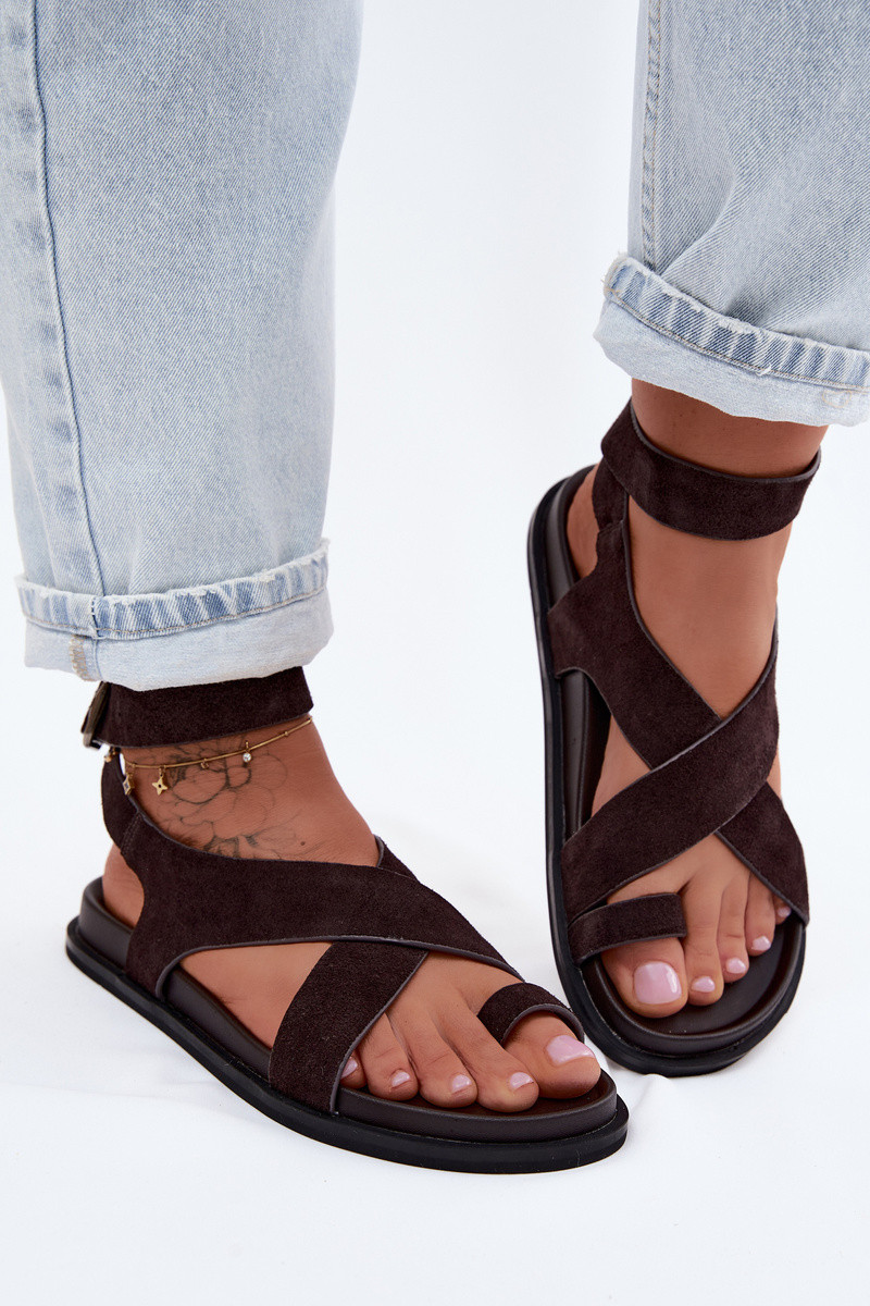 Flat sandals made of natural suede D&A CR61-3049 chocolate