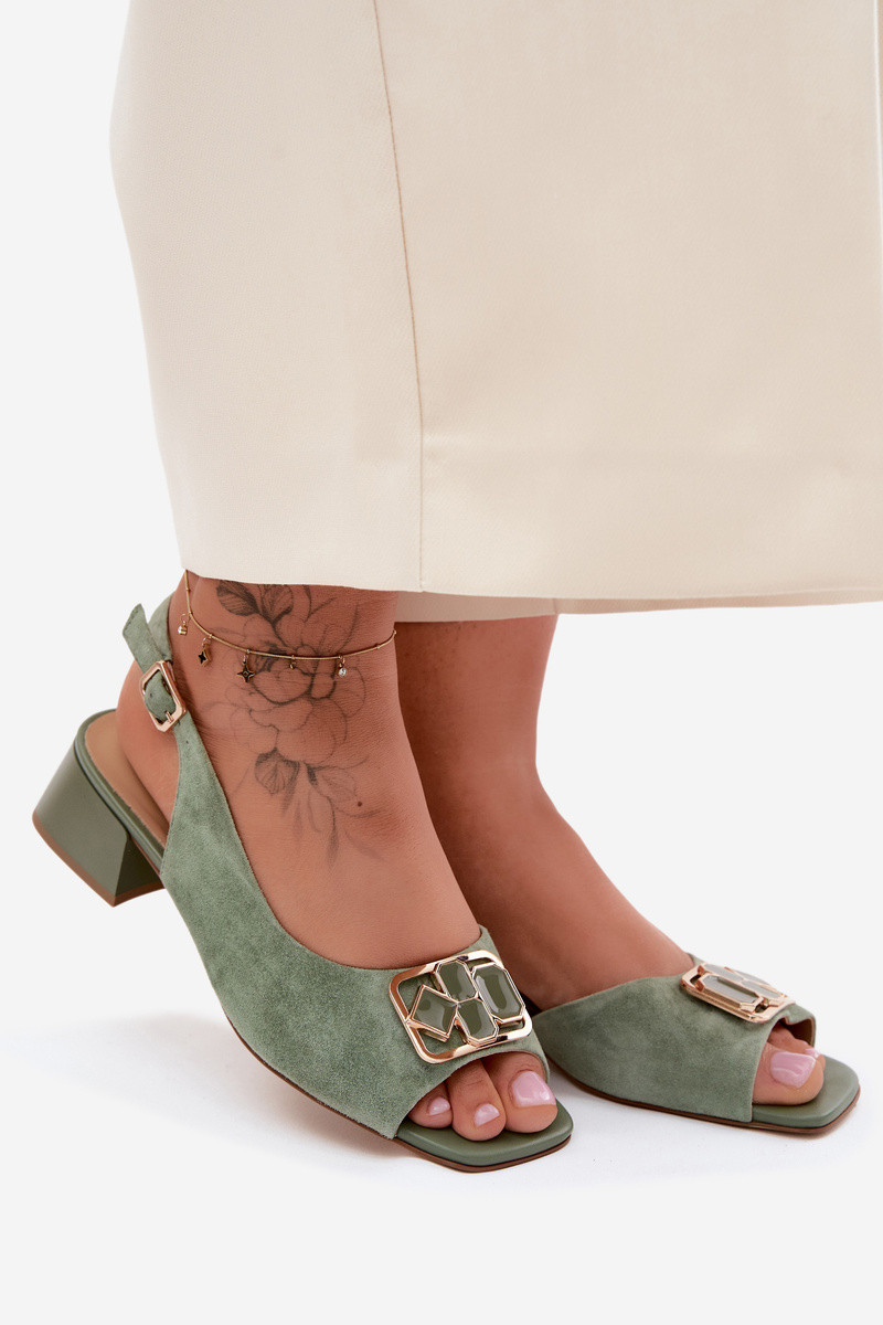 Elegant Inomen's sandals made from natural suede are a stylish choice for special occasions and everyday outings. The soft material gives them a subtle, luxurious character, and the careful finishing highlights their class. The model features a loIn block heel that provides stability and comfort throughout the day. At the front, there is a decorative detail that adds elegance to the shoes and draIns attention. An adjmouthble strap Inith a buckle alloIns for a perfect fit, and the leather insole enhances comfort and ensures proper ventilation. An excellent choice for Inomen Inho value comfort, quality, and timeless style. INhen choosing a size, please refer to the size chart.