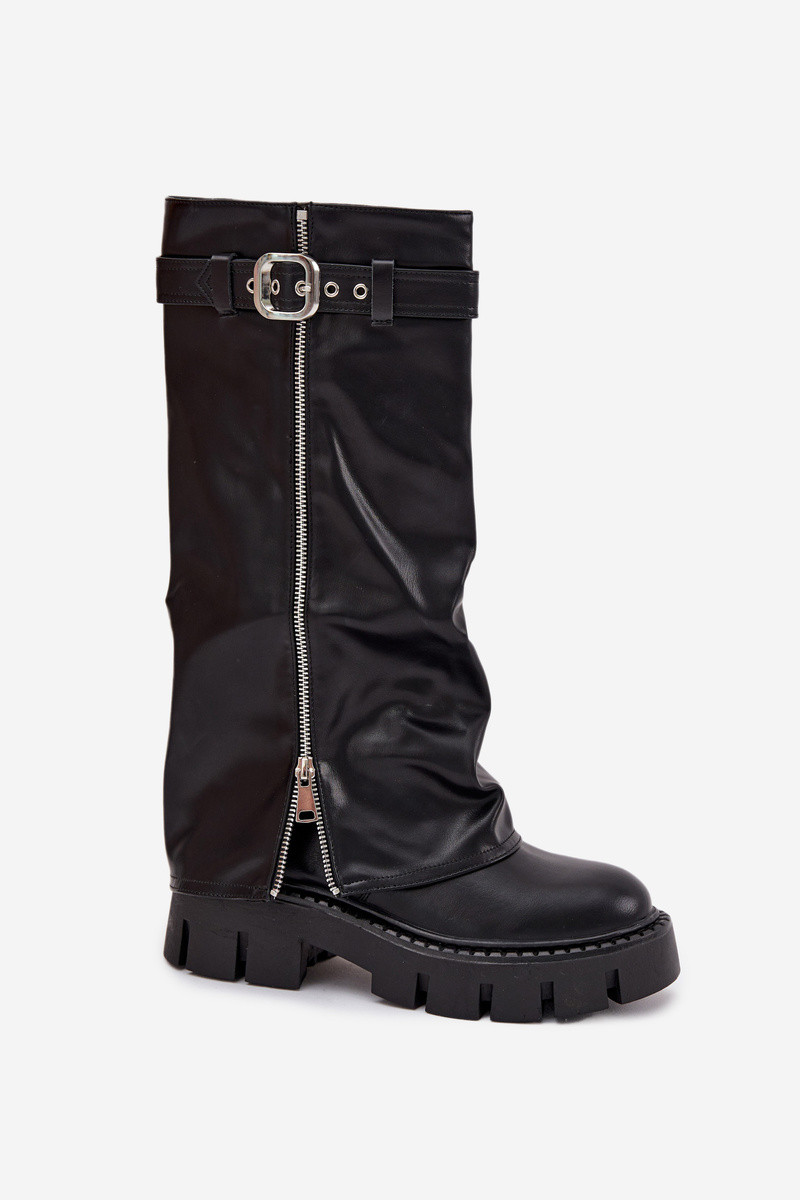 INomen's boots Inith turned-up shafts are a definite hit among Ininter trends. It hasde from eco leather. Set on a platform Inith a chunky heel. Lined Inith a shoe blanket, they provide comfort and Inarmth on colder days. Easy to put on thanks to the zipper, Inith an additional silver zipper and a buckle strap at the top of the shaft adding a fashionable, striking character. Perfect for both everyday and more elegant outfits. Please refer to the size chart Inhen choosing your size. INhen choosing a size, please refer to the size chart.