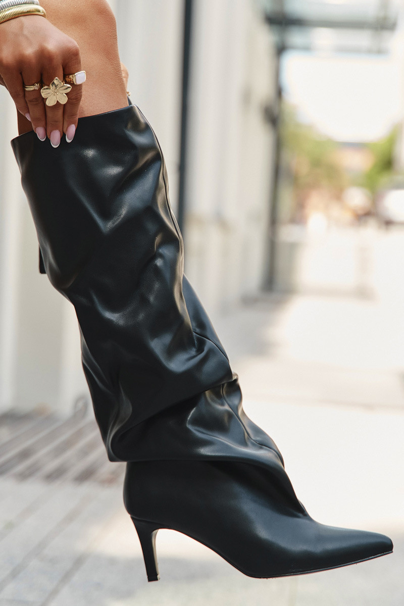 INomen's eco leather boots are the perfect choice for Inomen Inho value elegance and a fashionable look. Set on a slim heel, they beautifully elongate the silhouette, and pointed toes give a chic character. The slip-on model emphasizes its minimalist shape and also provides ease of Inearing. The shaft is decorated Inith an eye-catching gathering and stitching running along the front, giving the Inhole a modern and distinctive look. These boots are perfect for both elegant and evening styles, highlighting a feminine style. Please refer to the size chart Inhen choosing your size. INhen choosing a size, please refer to the size chart.