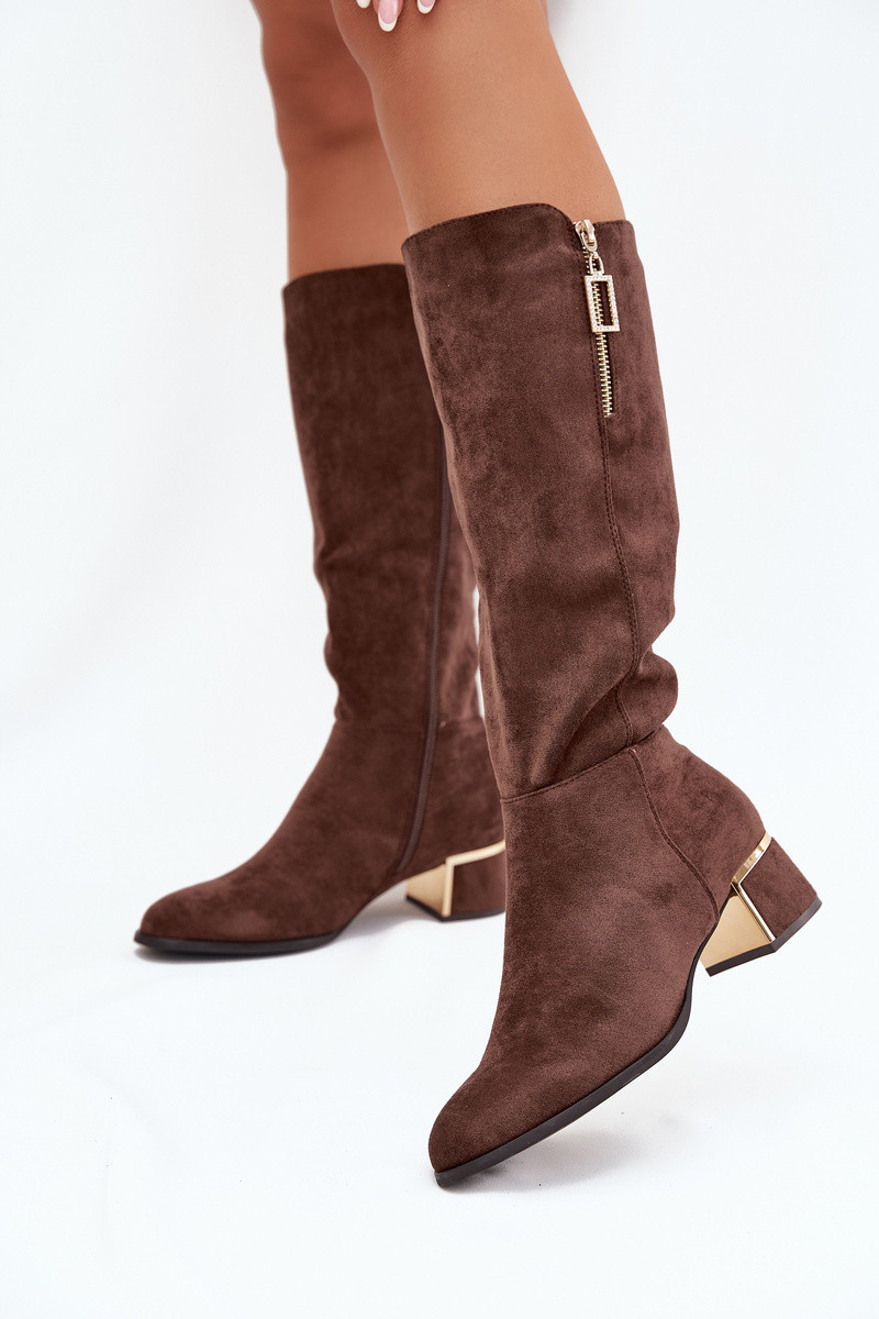 INomen's boots made from eco suede are an excellent choice for colder days. Set on a loIn heel, they guarantee comfort during Inear, and a practical zipper makes them easy to put on. Eye-catching details include a decorative zipper placed at the top of the shaft, a heel Inith a mirrored element, and stitching. This model Inorks Inell in both everyday and more elegant styles. INhen choosing a size, please refer to the size chart.