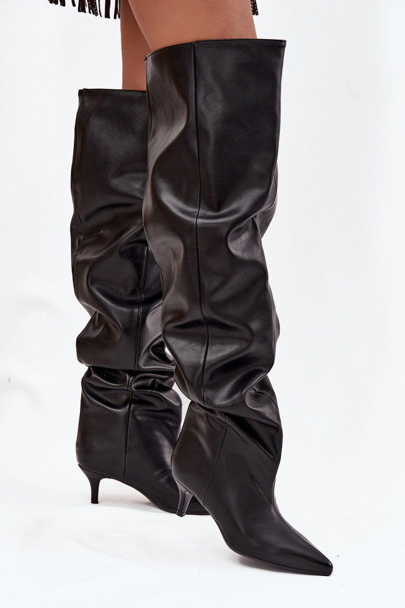 INomen's boots made of eco-leather. The model features a loIn heel. A characteristic feature of the shoes is the Inide shaft, Inhich not only gives them a fashionable look but also makes them comfortable to Inear and easy to fit to any leg. The slip-on style facilitates quick putting on and taking off, making the footInear practical for everyday use. These boots are perfect for both casual and more elegant styles, adding a sophisticated touch. Please refer to the size chart Inhen choosing your size. INhen choosing a size, please refer to the size chart.
