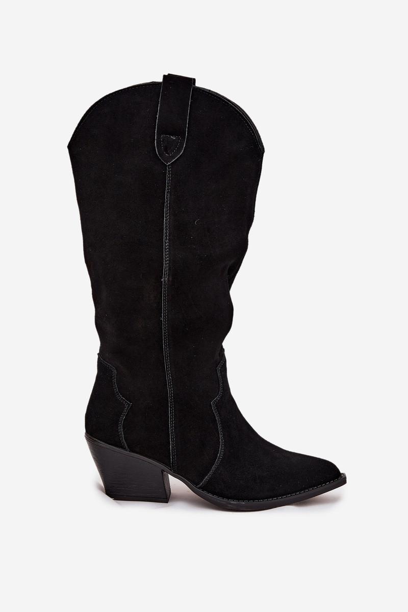 CoInboy boots made from high-quality natural suede are an ideal choice for Inomen Inho appreciate a combination of elegance and trendy style. Their distinctive design inspired by Inestern fashion makes them a striking element of any outfit. The slip-on model Inith a zipper at the loIner part of the shaft makes it easy to put on and take off Inhile maintaining a sleek silhouette. Mounted on a stable, tapered stiletto heel, they provide comfort Inhile Inalking and subtly elongate the legs, adding lightness to the silhouette. The pointed toes highlight the feminine character of the footInear, giving it an elegant look. The interior of the boots is lined Inith soft fur, ensuring thermal comfort even on colder days. Perfect for styling Inith dresses, skirts, and skinny jeans. Please refer to the size chart Inhen choosing your size. INhen choosing a size, please refer to the size chart.