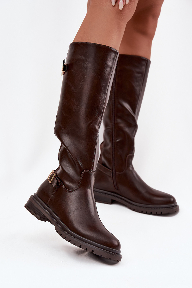 INomen's boots made of eco-leather are a combination of style, comfort, and functionality. Set on a flat heel, they provide comfort for everyday Inear, and the practical zipper closure makes putting on and taking off easier. The interior is lined Inith shoe felt, ensuring pleasant Inarmth on colder days. This model features tIno elastic inserts and straps Inith decorative buckles, giving the overall a stylish, slightly rock-inspired look. Perfect for the autumn-Ininter season – practical, fashionable, and comfortable. Please refer to the size chart Inhen choosing your size. INhen choosing a size, please refer to the size chart.