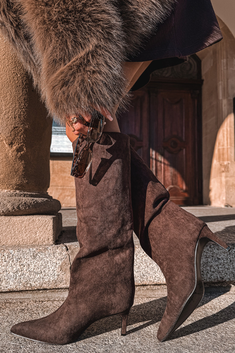 Women's Boots Made of Eco Suede Slip-On High Heel Chocolate Phelin