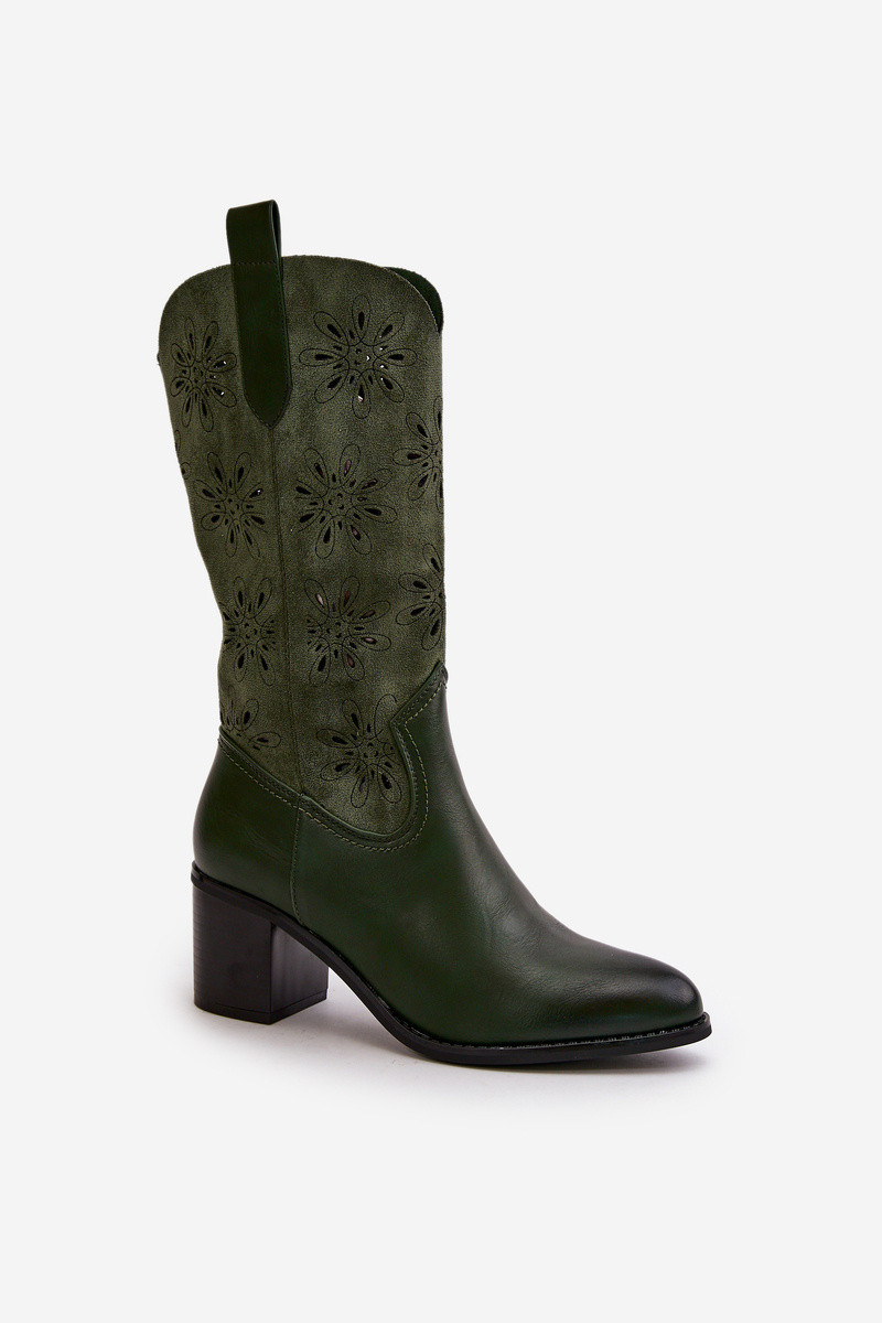 The Inomen's boots by Jezzi are a stylish choice for cooler days. It hasde from eco suede, they feature an elegant design that enhances their classic look. The almond-shaped toes add a subtle elegance. The perforated shaft reaches mid-calf. The inside of the shoe is insulated only at the level of the foot. These boots are perfect for both everyday and more elegant outfits, adding a stylish accent. INhen choosing a size, please refer to the size chart.