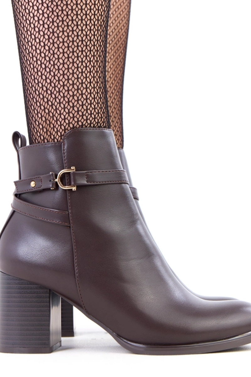 Brązowe botki z ozdobnym paskiem na cholewce Klaus