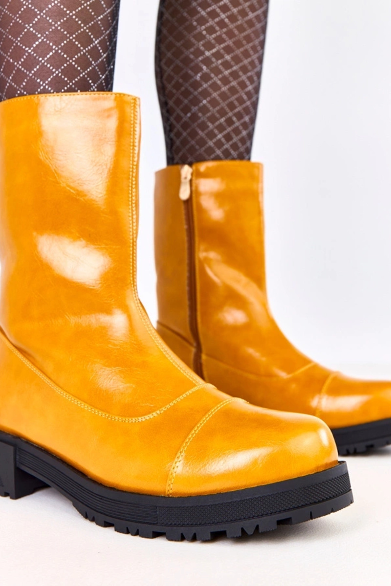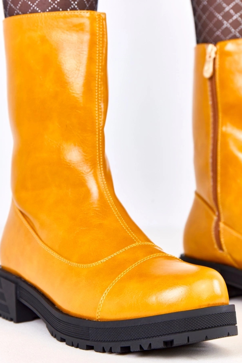 Pomarańczowe botki damskie na płaskie podeszwie Almoro