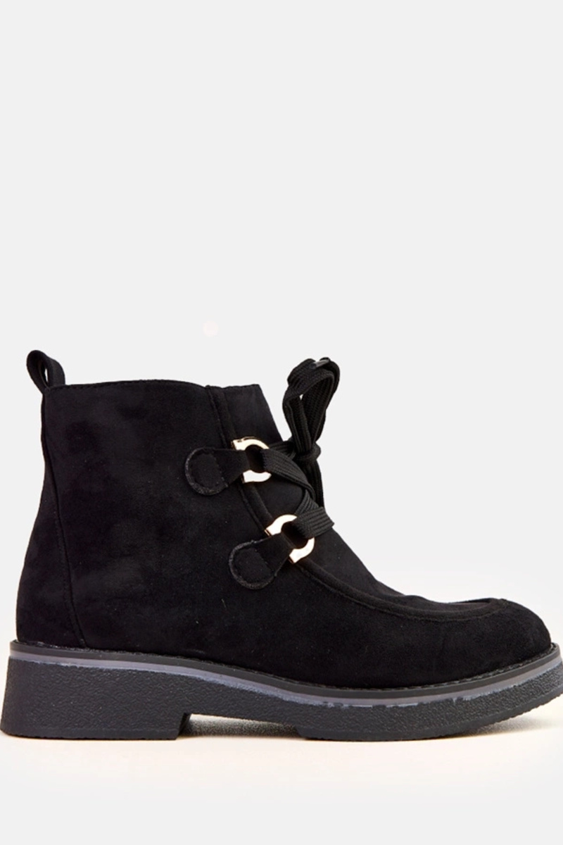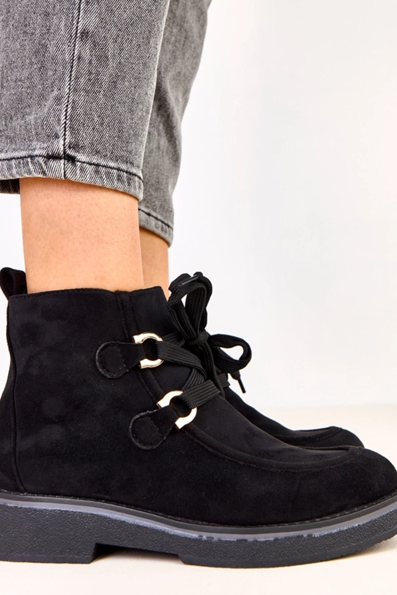 Czarne botki ocieplane z ozdobnymi sznurówkami Katrins