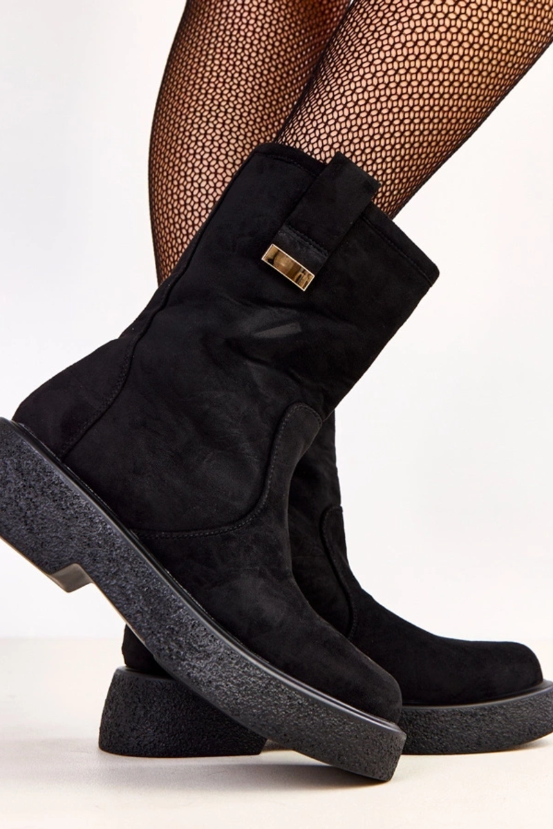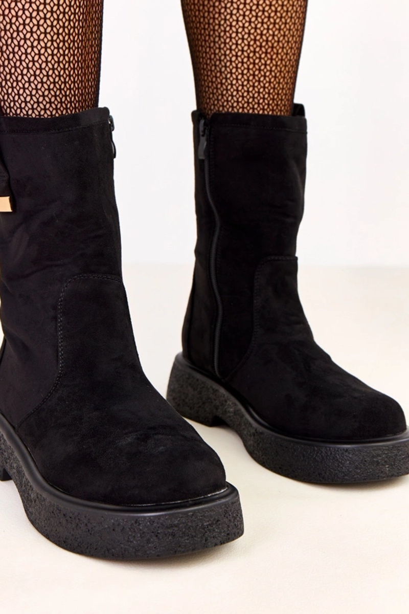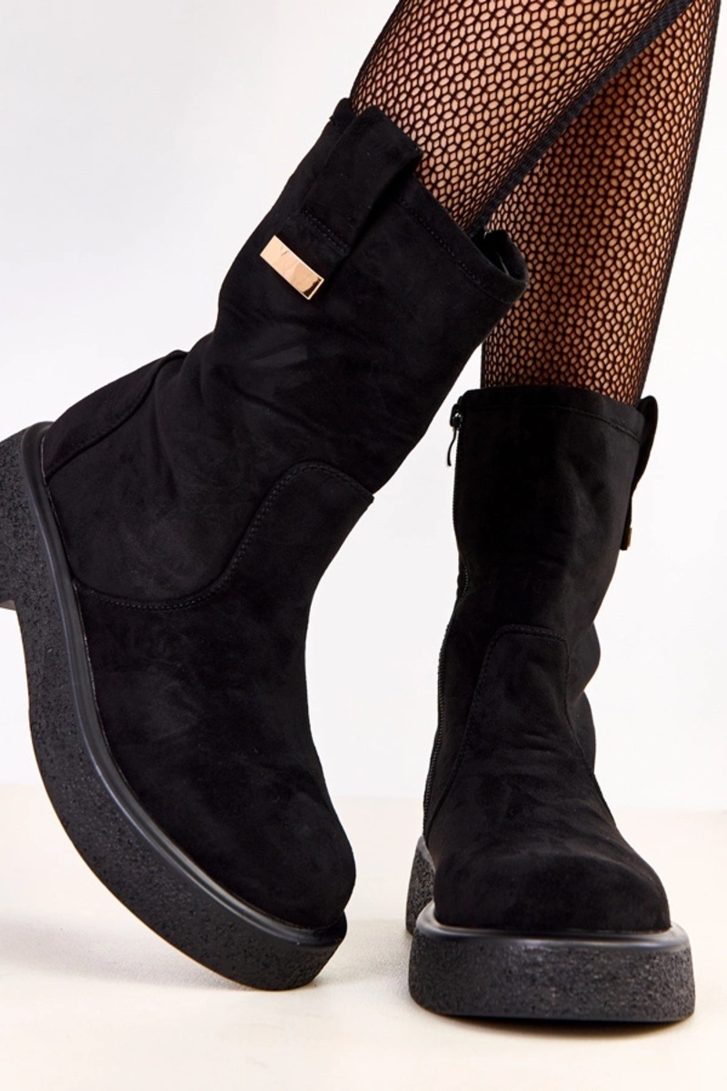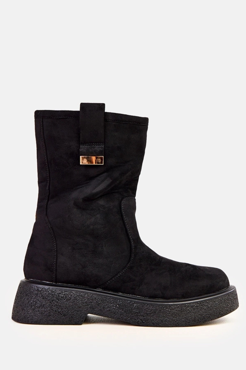 Czarne botki ekozamszowe ze złotą ozdobą Mileda