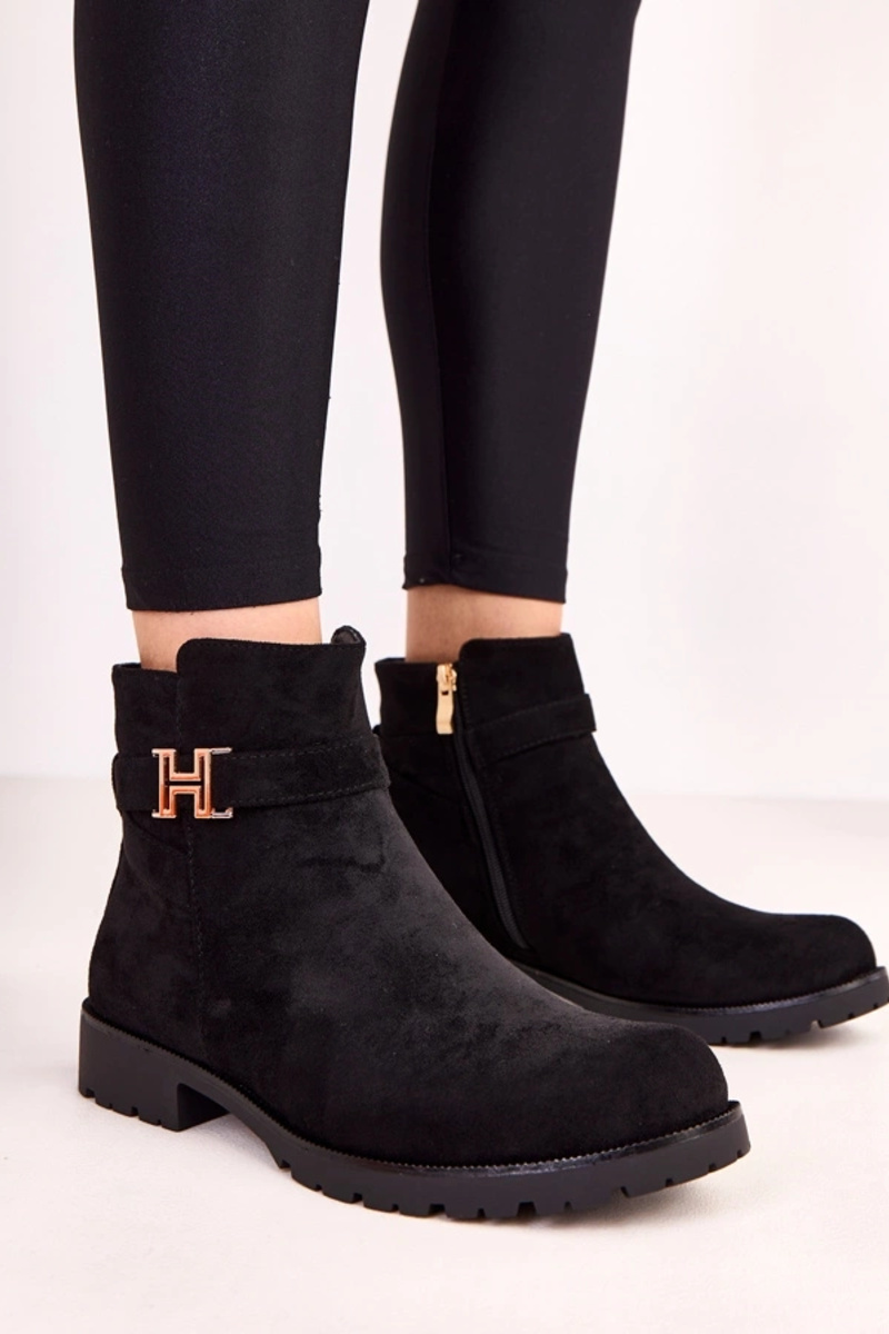 Czarne botki damskie ze złotą ozdobą Mengel