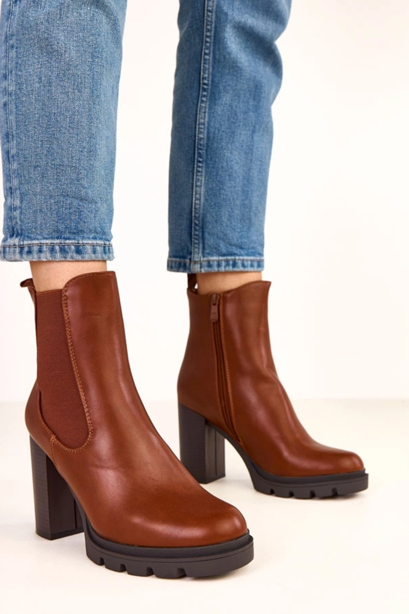Brązowe botki na słupku z elastyczną wstawką Darina