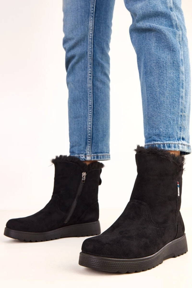 Czarne botki damskie ocieplane z ekozamszu Breyra