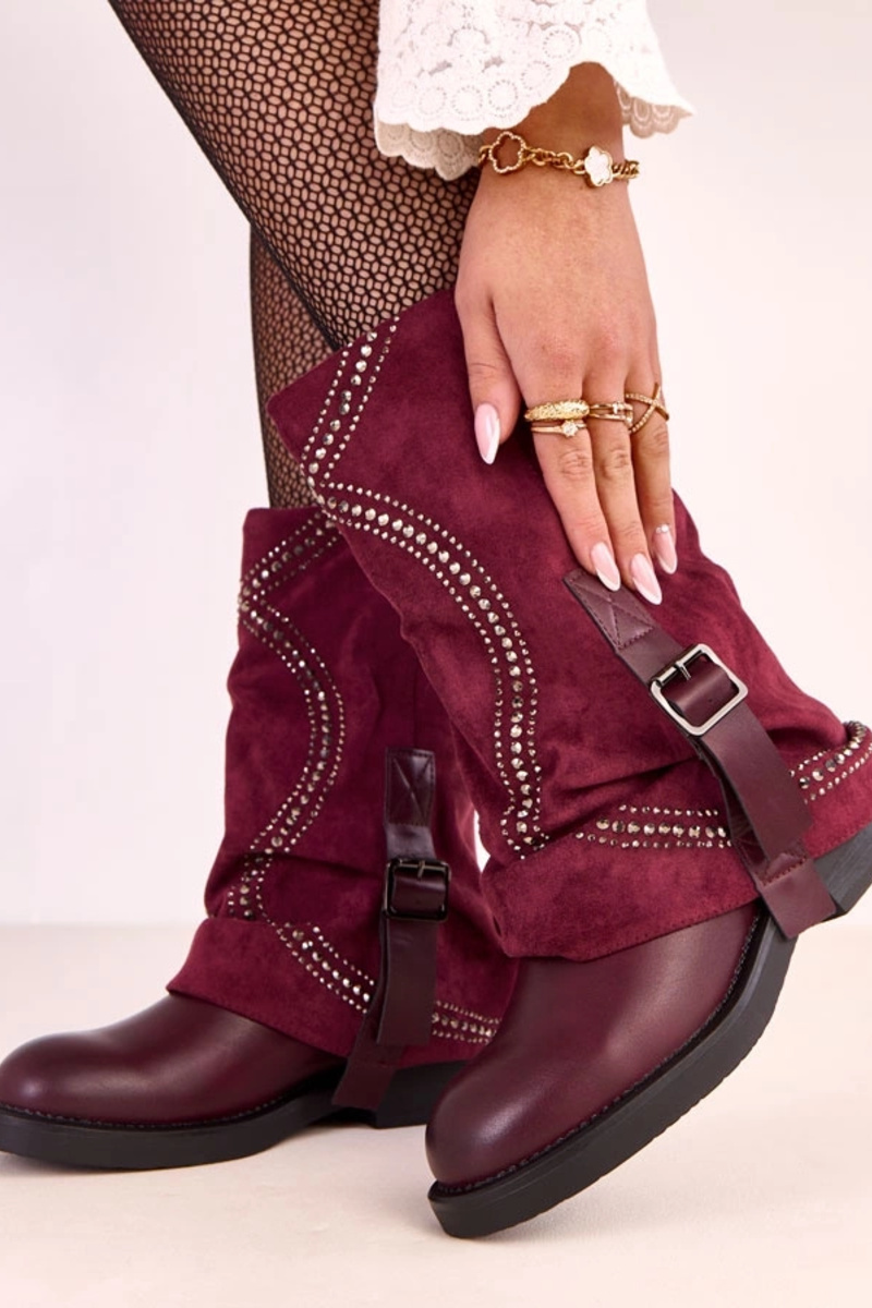 Bordowe botki z wywiniętą cholewką zdobione cyrkoniami Ginny