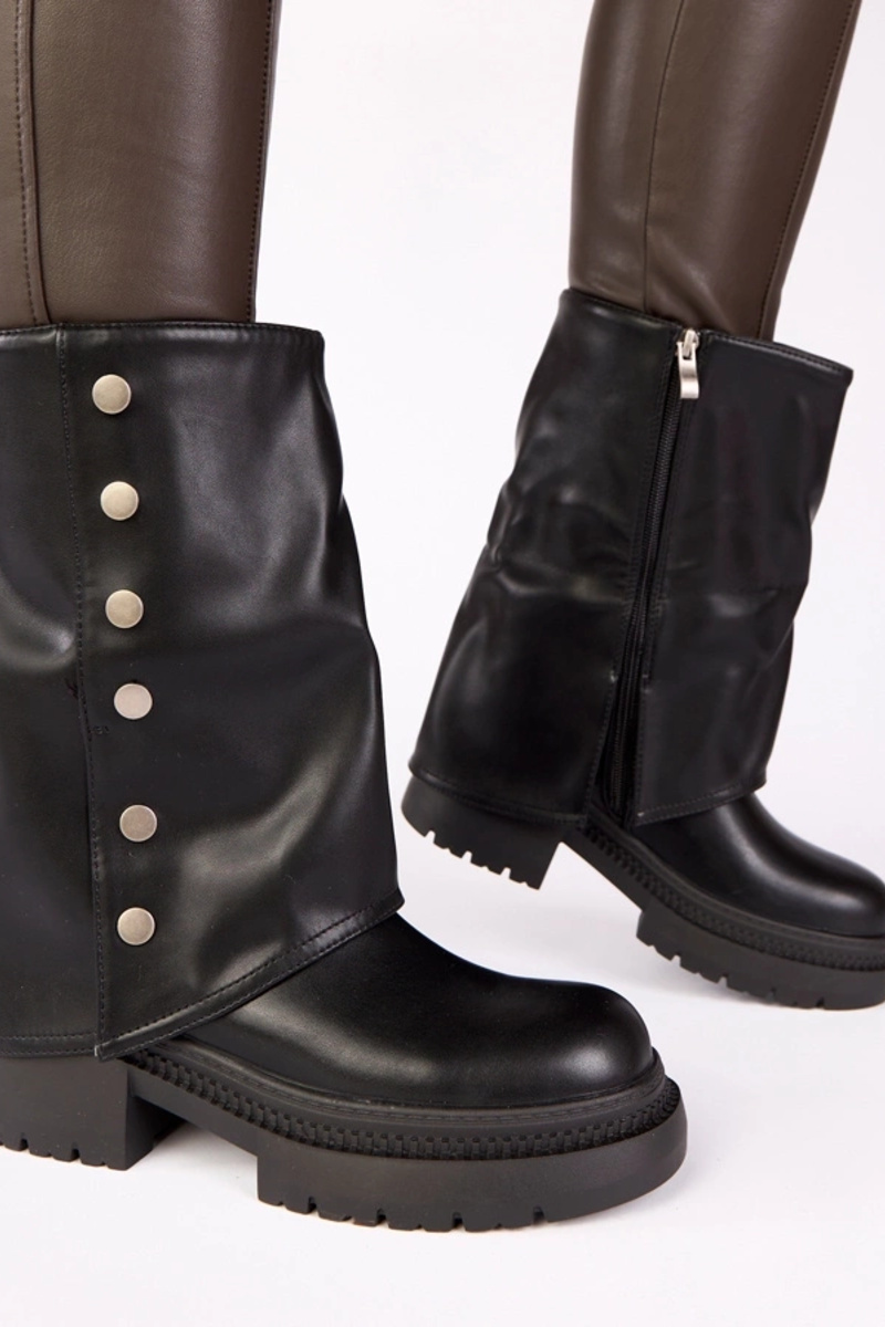 Czarne botki z wywiniętą cholewką na platformie Carla