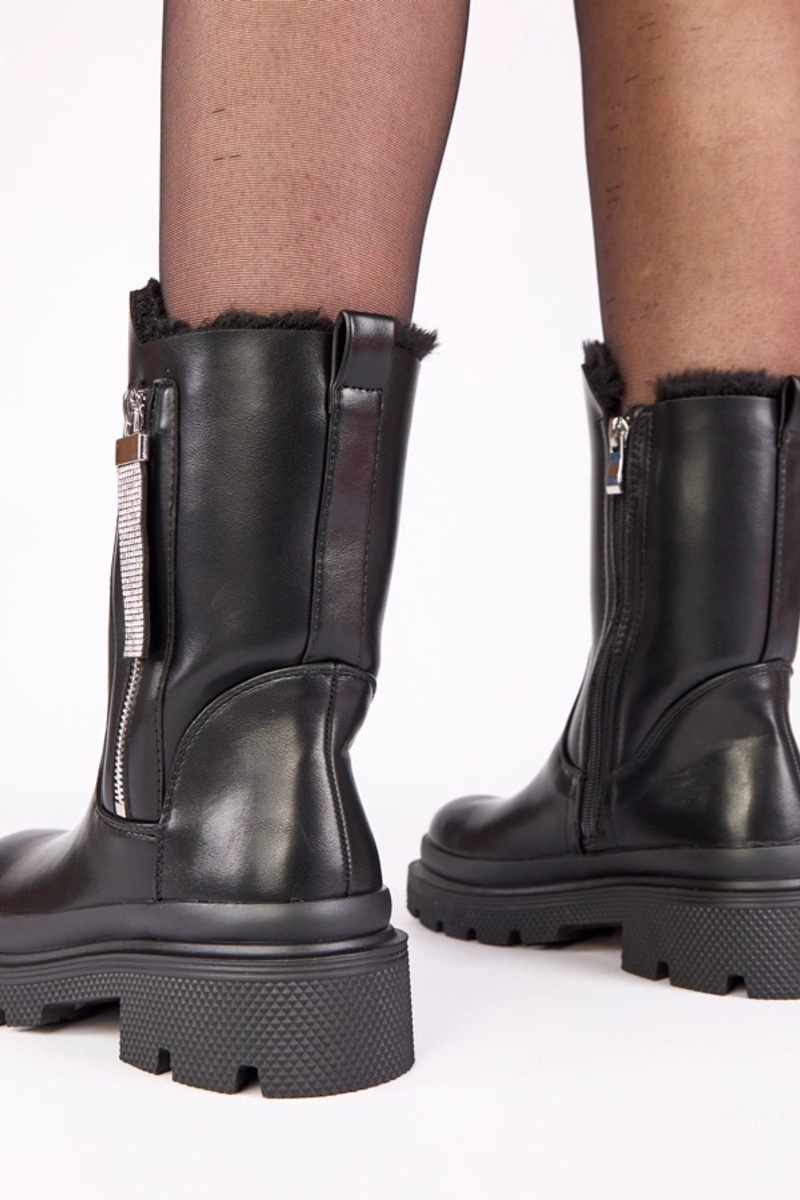 Czarne botki na platformie z ozdobnym suwakiem z cyrkoniami Asta