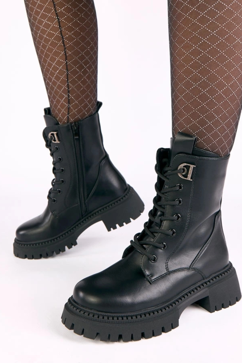 Czarne botki na platformie zdobione cyrkoniami Mathia