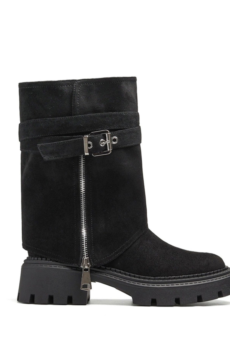 Czarne botki z odpinaną cholewką z ozdobnym suwakiem Edna