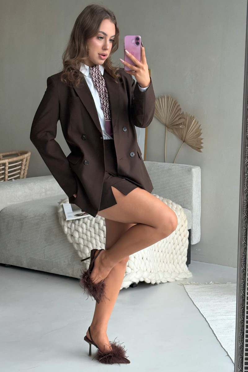 Heeled shoes with feathers and open heel chocolate Belice