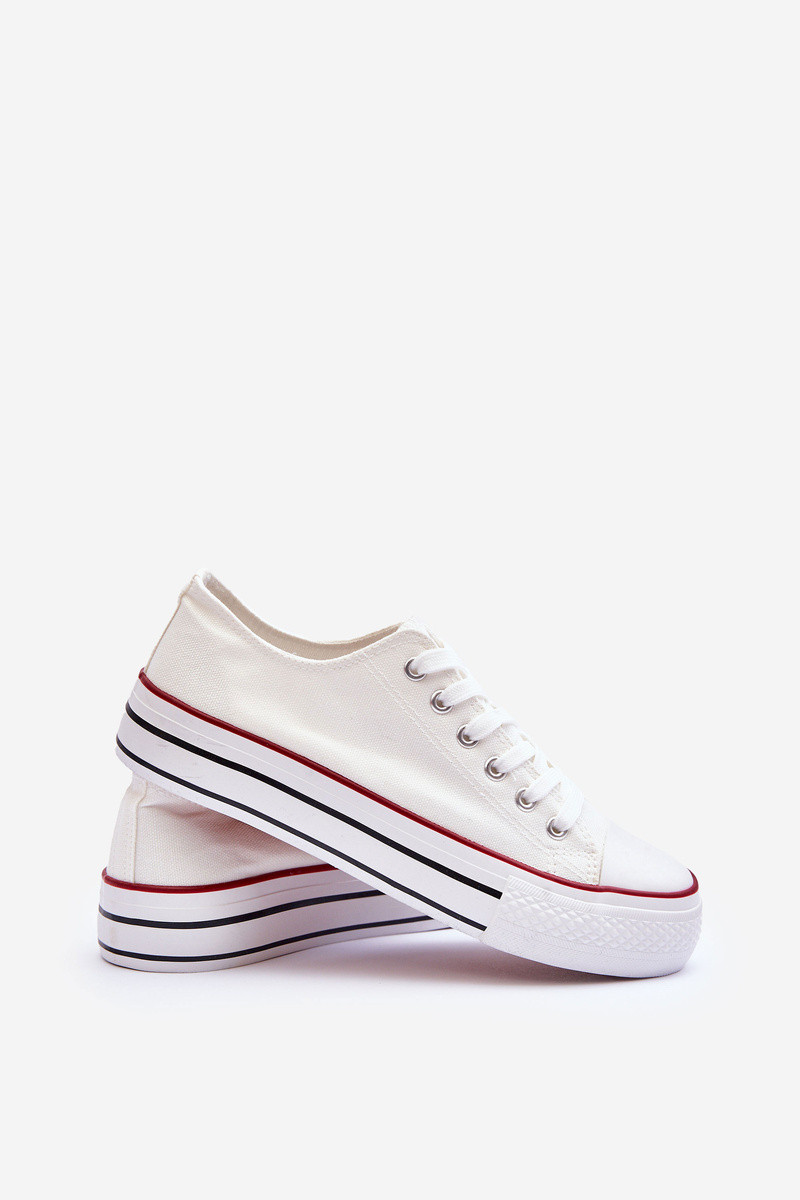 Classic, lace-up women's sneakers have been made of textile material. Set on a massive platform. The rubber sole is anti-slip. A timeless model that you should have in your closet! You can certainly wear them for many styling options! The tip has been reinforced with rubber material. When choosing a size, please refer to the size chart.