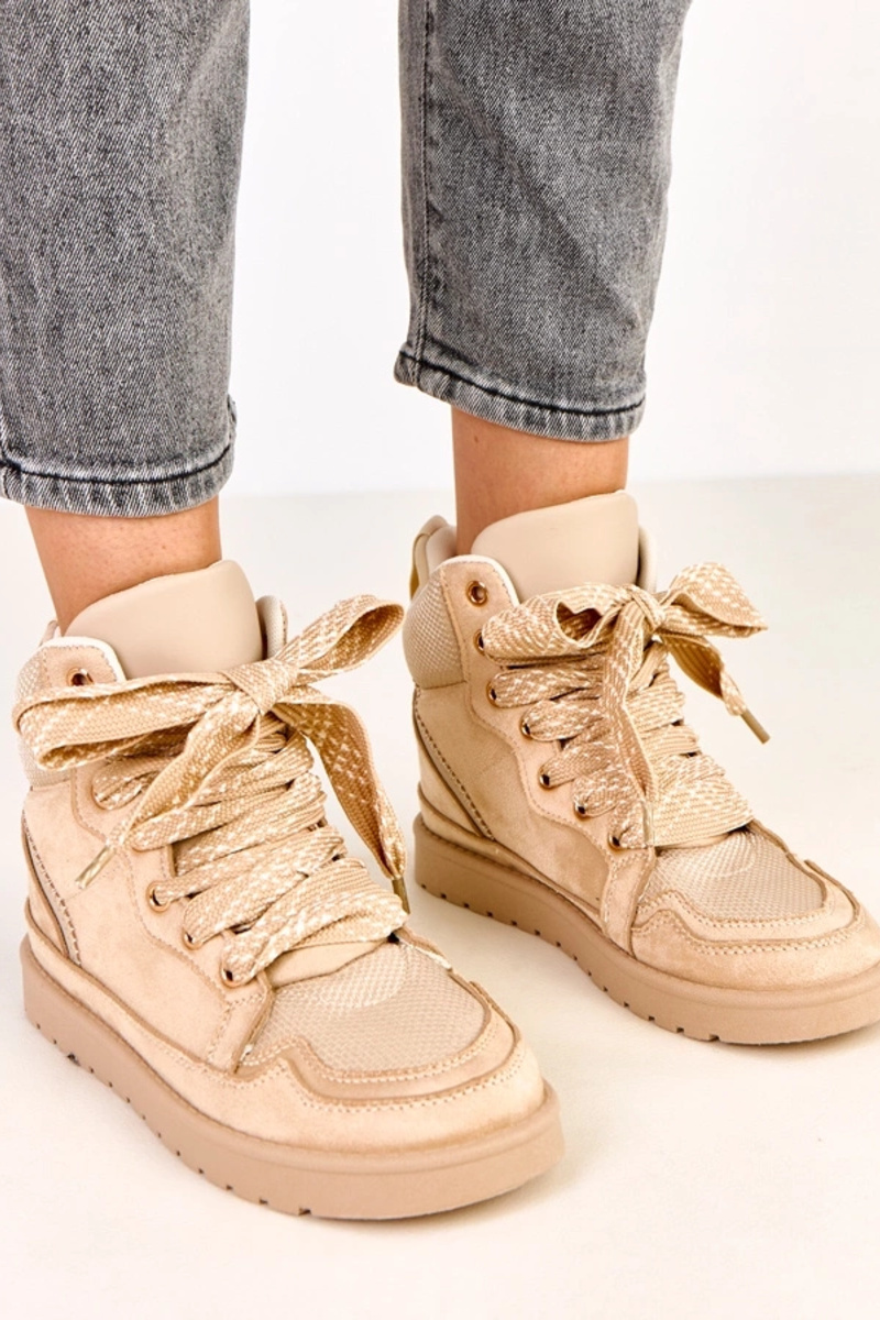 Beżowe sneakersy wysokie z grubymi sznurówkami Klevis
