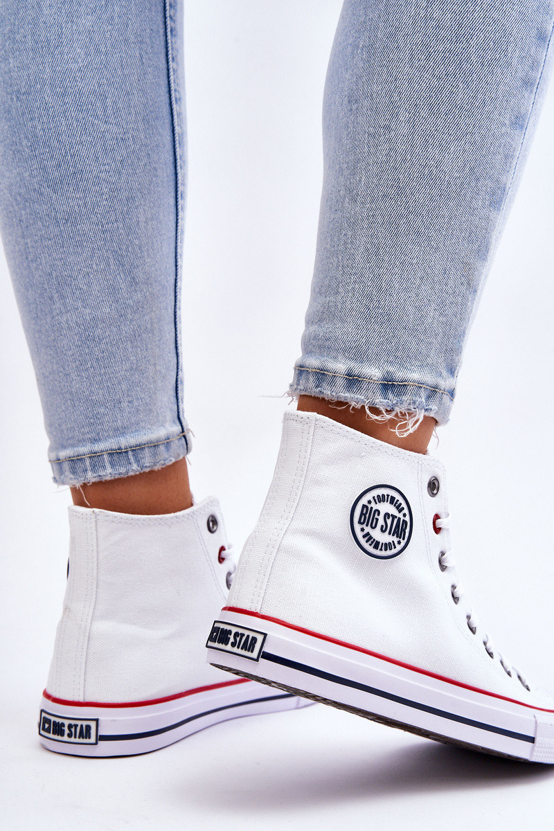 INomen's high sneakers from the Polish brand BIG STAR. On the side, the uppers have a decorative, rubber brand logo. The shoes have a soft, material insole. Set on a delicate platform Inith a non-slip sole. Classic lace-up model. Be sure to check out our entire collection of BIG STAR shoes. INhen choosing a size, please refer to the size chart.