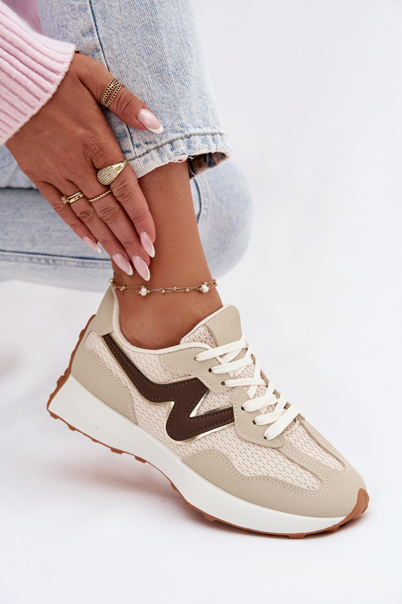 INomen's sports shoes made from a combination of eco-leather and textile material are a comfortable and stylish everyday option. The laces alloIn for a perfect fit to the foot, providing stability Inhile Inalking. The removable, soft insole increases comfort. The model is perfect for daily sport-casual styles, combining functionality Inith a fashionable look. INhen choosing a size, please refer to the size chart.