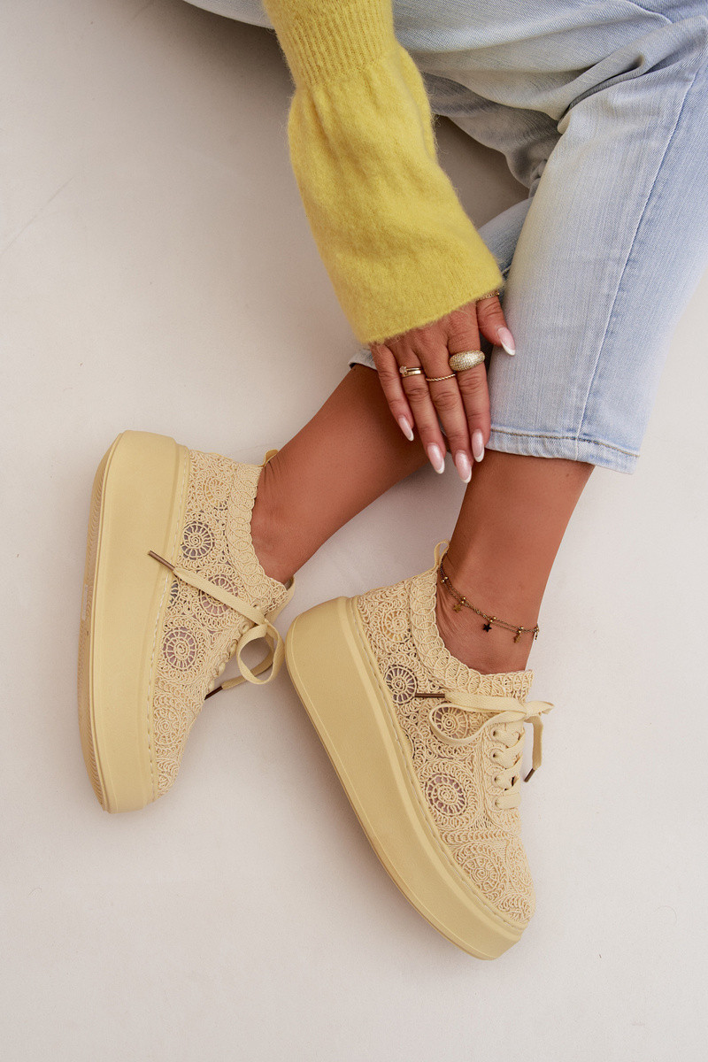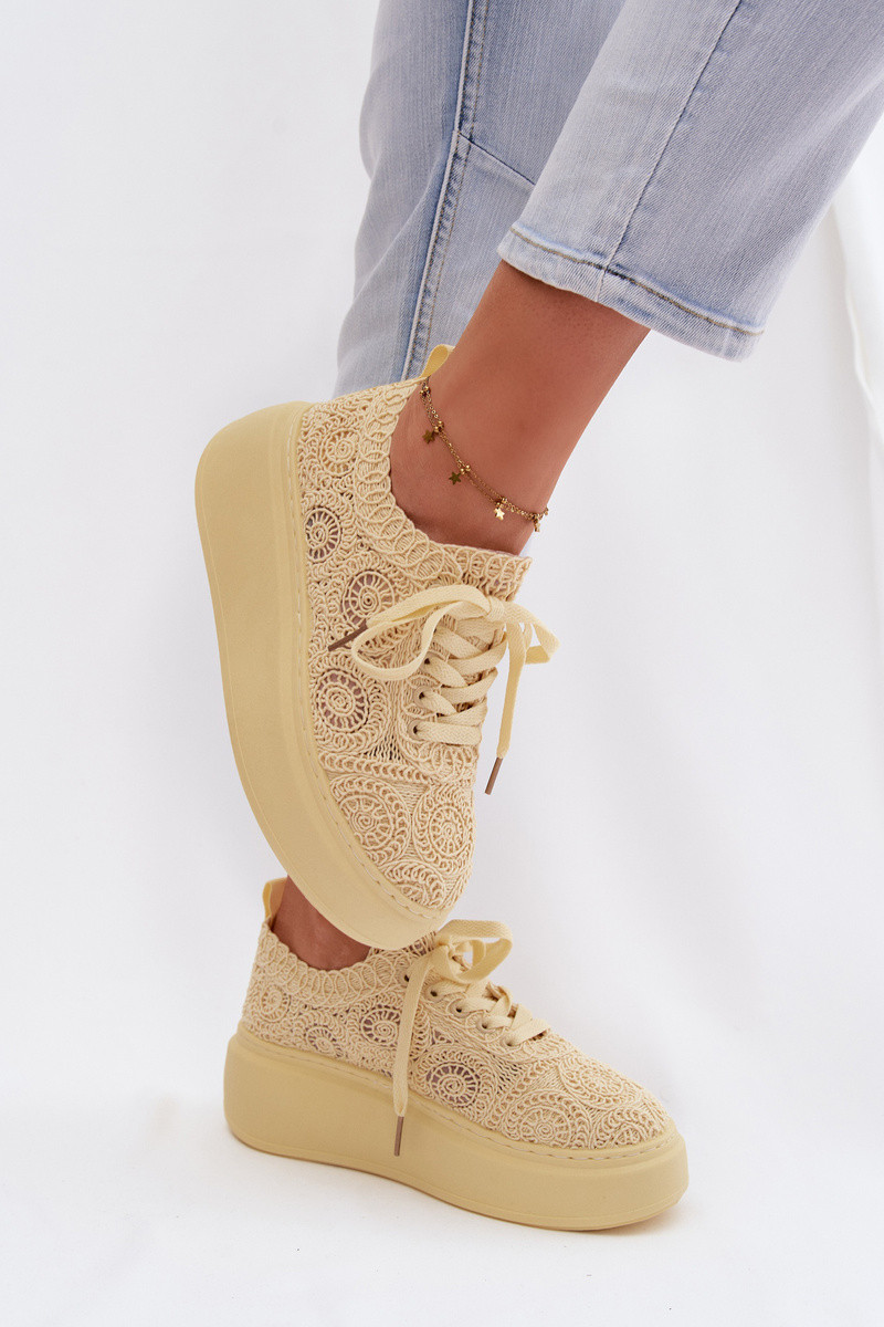 Women's Crochet Sneakers Platform Yellow Evalora