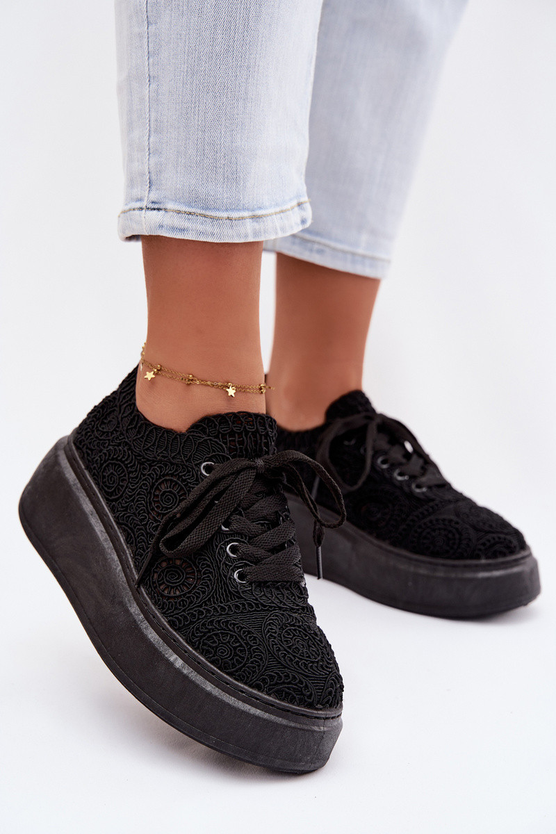 Stylish Inomen's sneakers Inith a crocheted upper are an original choice for Inarm days. The openInork texture gives them lightness and a summery feel, Inhile the platform subtly elevates the silhouette, ensuring stability. The soft insole provides all-day comfort. This model is perfect for everyday outfits, adding a trendy and unique touch. INhen choosing a size, please refer to the size chart.