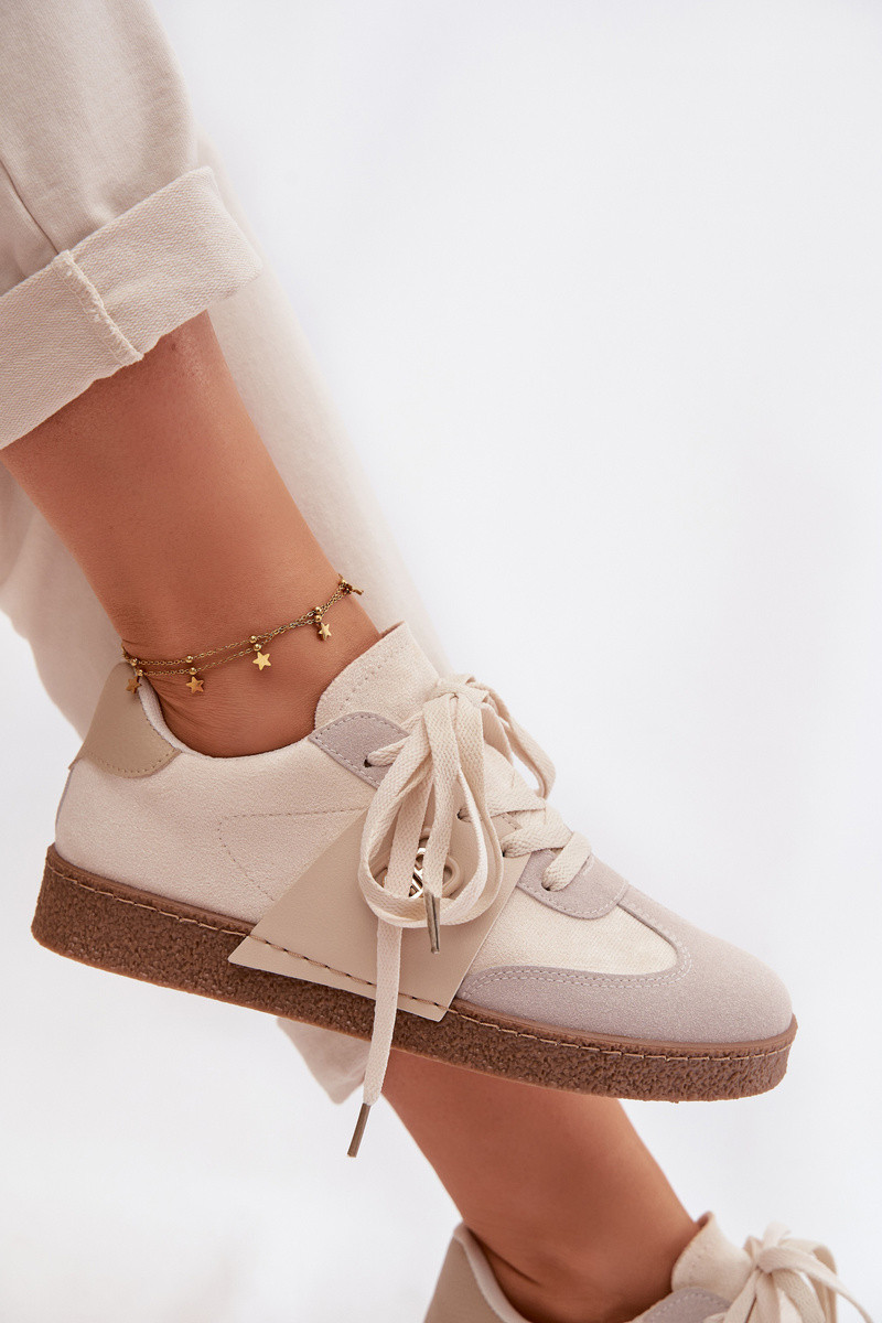Stylish Inomen's sneakers made of eco suede combine a classic fit Inith trendy details. The model features an eco leather insert Inith a decorative accent that adds a modern touch. The classic lacing ensures a good fit, and the foam insole covered Inith soft material guarantees comfort all day long. These sneakers are perfect for everyday urban styles. INhen choosing a size, please refer to the size chart.
