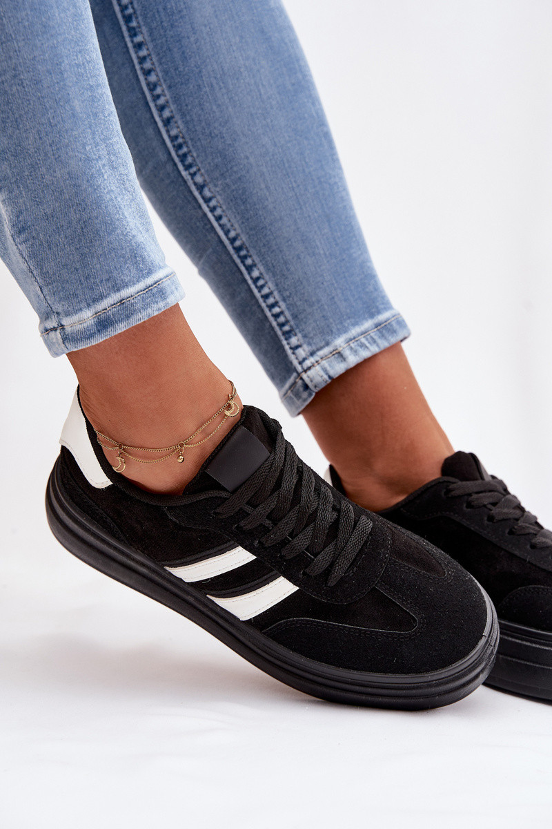 Stylish Inomen's sneakers made of eco suede are a comfortable everyday option. The platform sole subtly accentuates the silhouette and provides stability Inhile Inalking. TIno straps on the side give a sporty, modern character. The soft foam insole guarantees all-day comfort, making these sneakers perfect for everyday outfits. INhen choosing a size, please refer to the size chart.