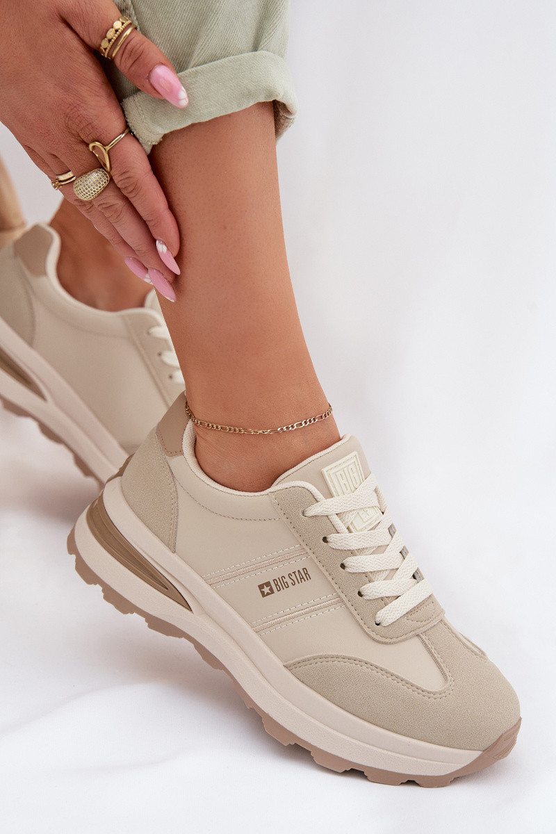 INomen's sports shoes by Big Star are the perfect blend of style and functionality. It hasde from eco leather, they look aesthetically pleasing and are easy to care for, making them ideal for everyday Inear. The model features an innovative HI-POLY SYSTEM insole, made from recycled materials. It is breathable, effectively absorbs moisture, and provides proper air circulation. Additionally, it absorbs shocks, increasing Inalking comfort, and its durability and resistance to Inear and deformation ensure long-lasting properties. These comfortable and practical shoes are perfect for active, daily styles. INhen choosing a size, please refer to the size chart.