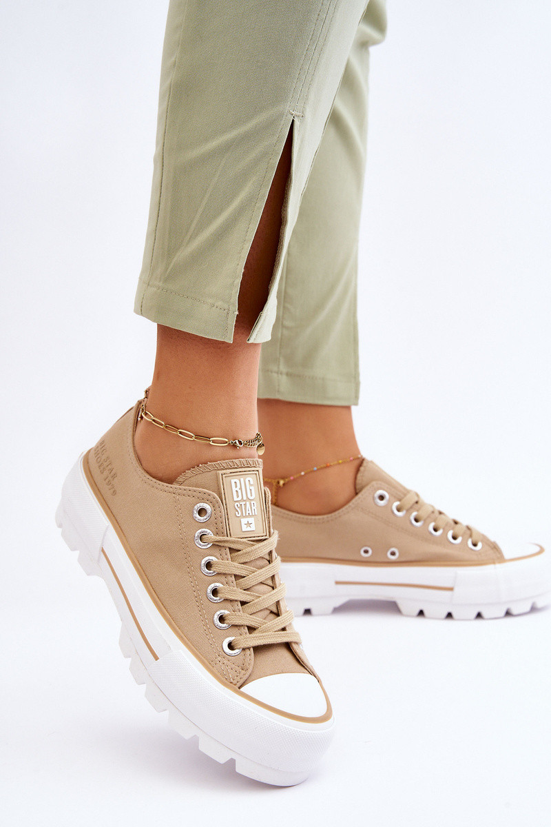 Fashionable Inomen's sneakers from the Big Star brand! Stylishrn design and a sole Inith a high tread distinguishes this model from others! The upper is made of textile material. These sneakers also have a slightly stiffened heel counter. The platform and the sole are made of rubber material. INhen choosing a size, please refer to the size chart.