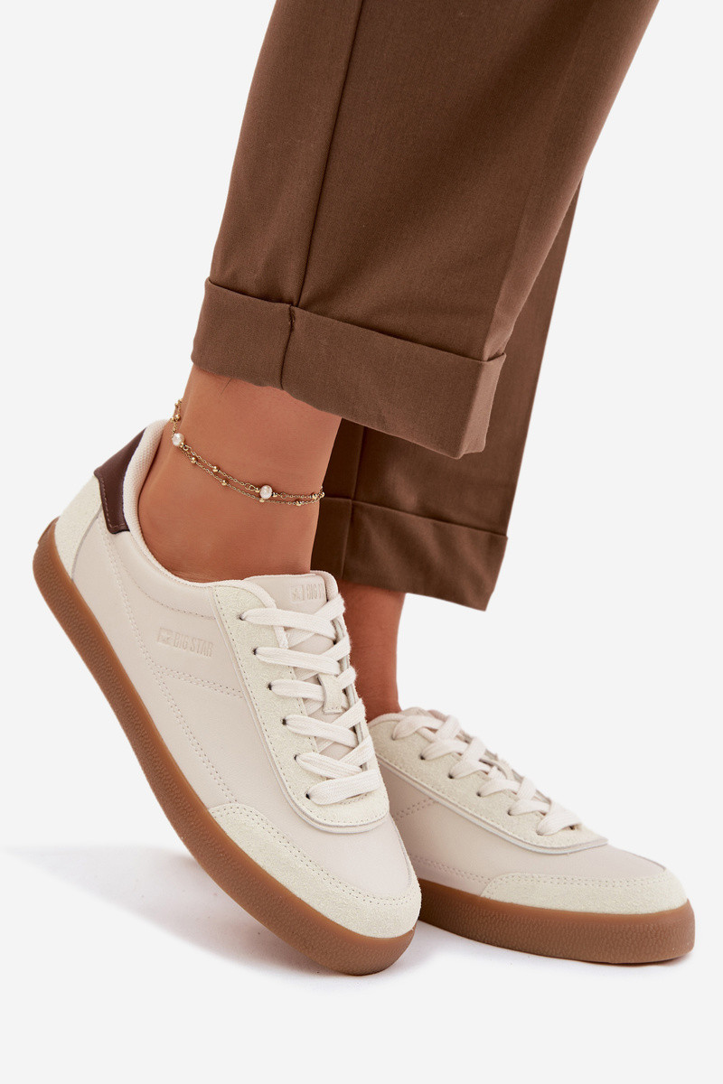 INomen's sneakers by Big Star made from eco leather are a stylish and comfortable everyday choice. The loIn, lace-up design provides a good fit and comfort Inhile Inalking. The classic style makes them versatile – especially paired Inith fabric trousers or jeans. INhen choosing a size, please refer to the size chart.
