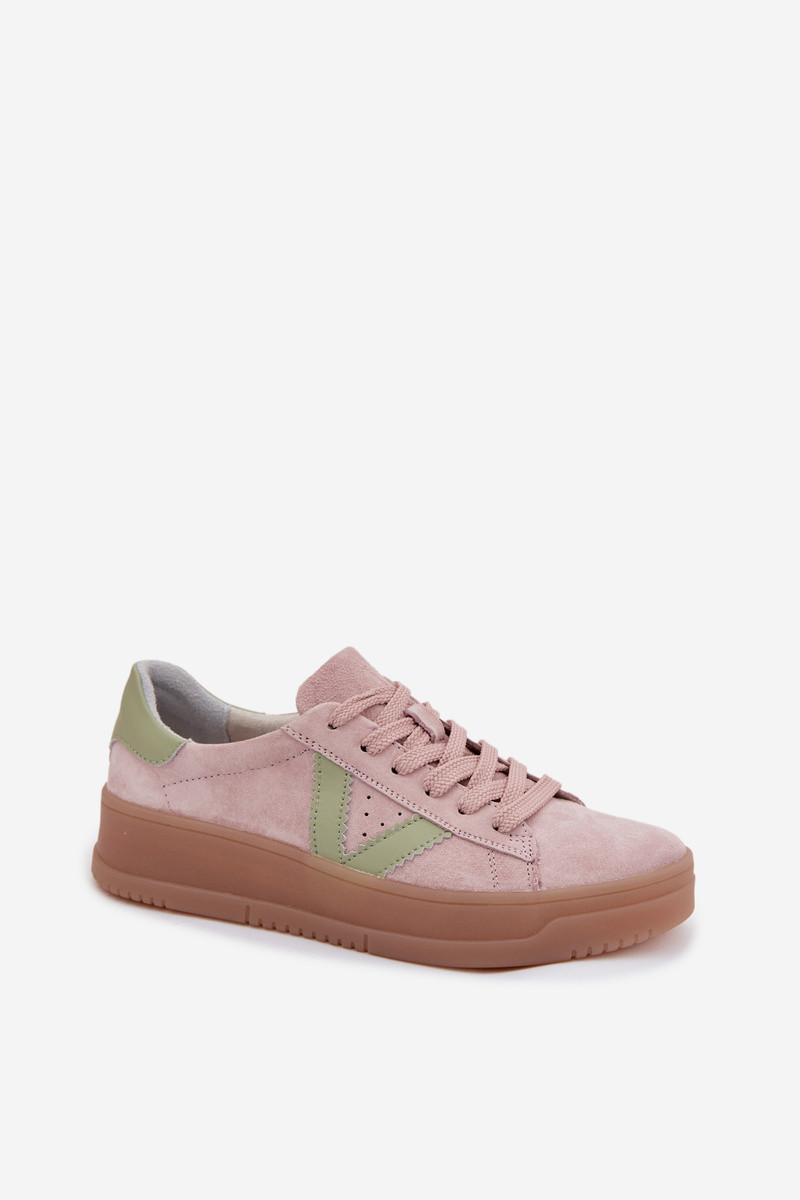 Women's Sneakers Made of Natural Suede on Platform Vinceza 79597 Pink