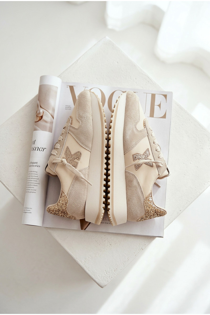 Leather Suede Women's Sneakers On Platform Kobbo 100103 Beige