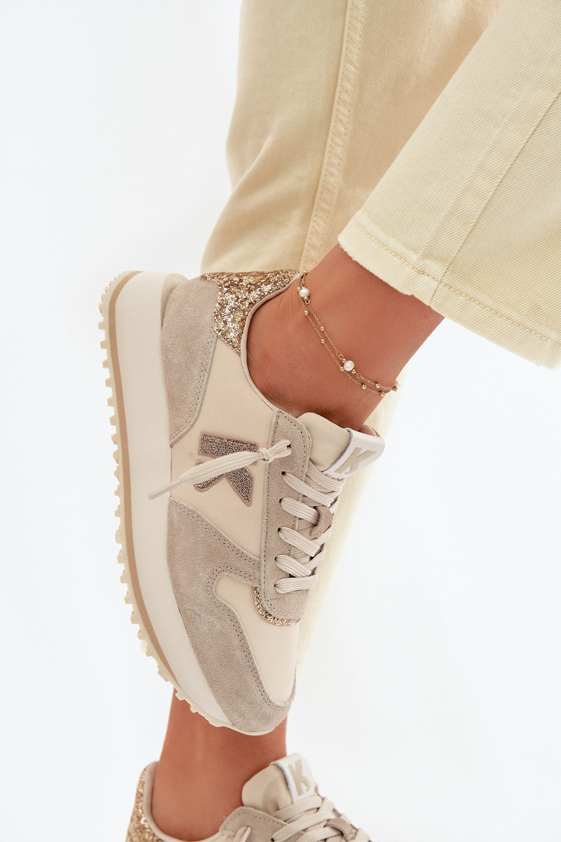 Leather Suede Women's Sneakers On Platform Kobbo 100103 Beige