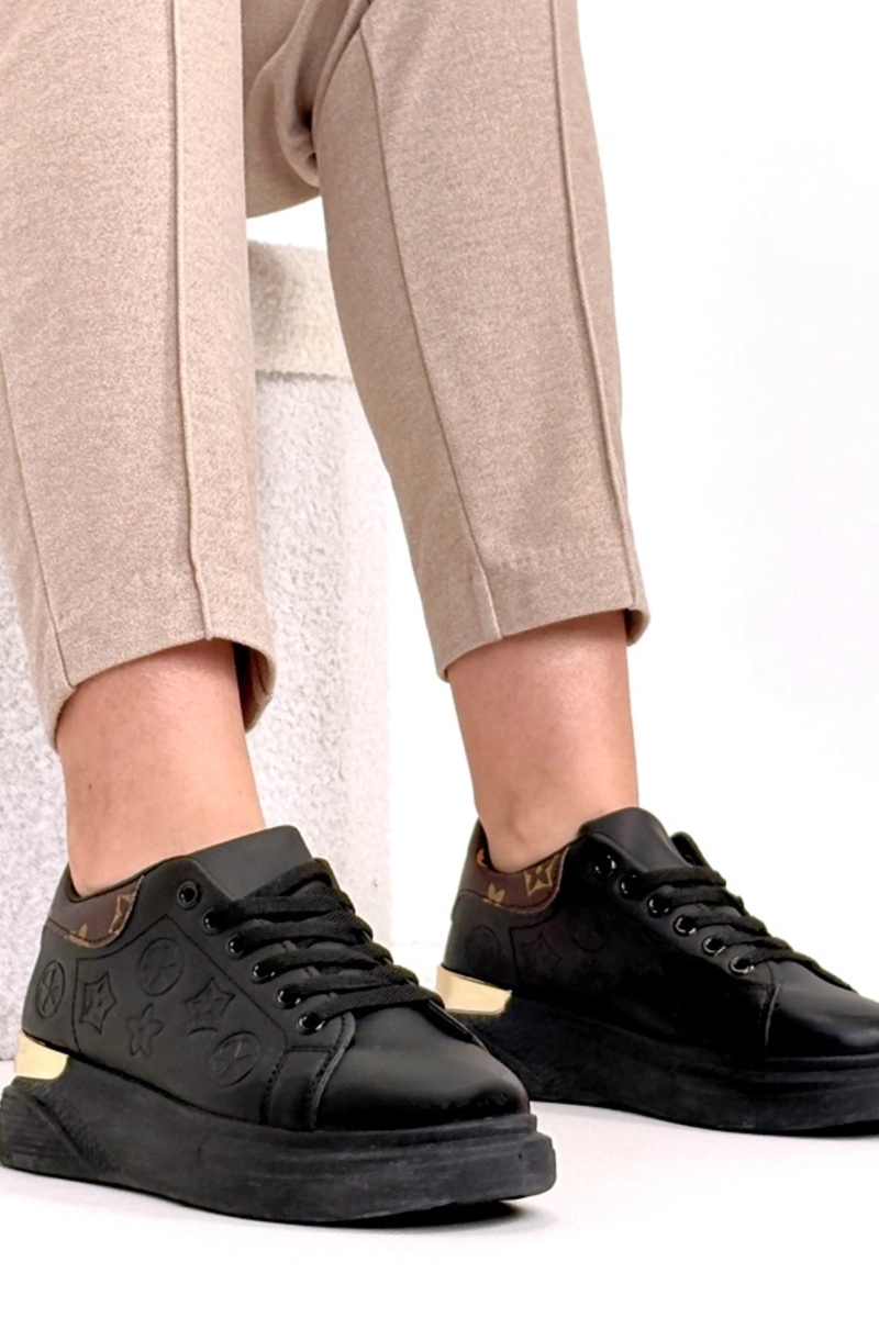 Czarne Sneakersy Zdobione Tłoczeniem Peyton