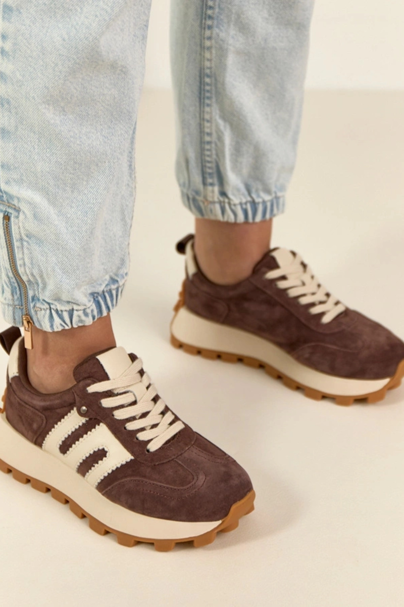 Czekoladowe Skórzane Sneakersy Na Platformie Filippo