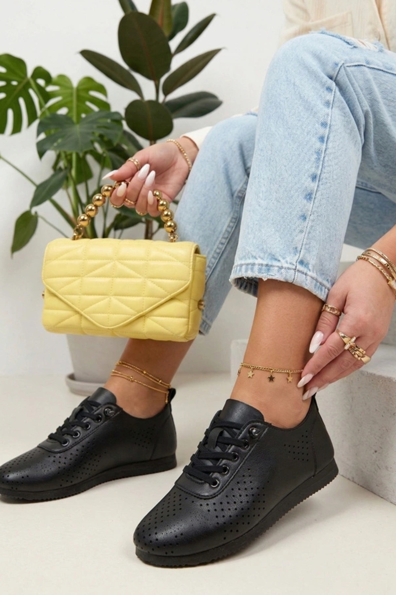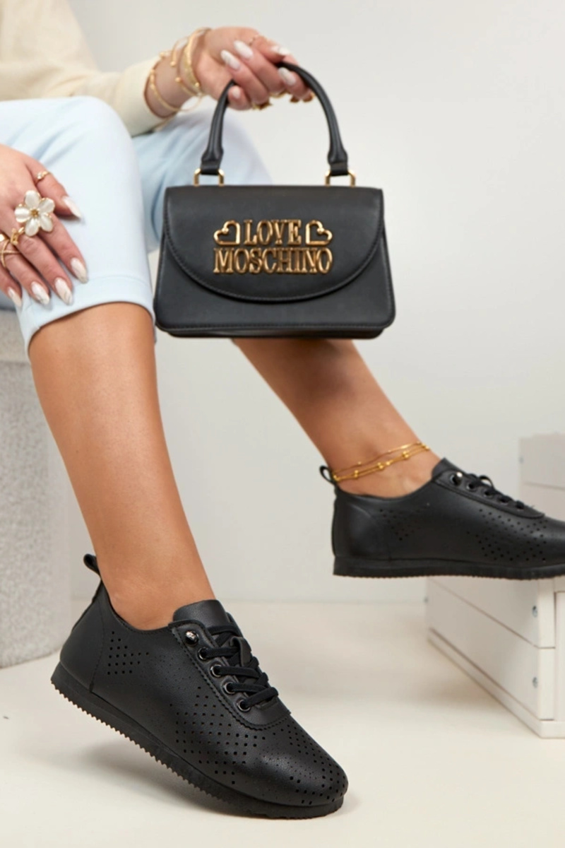 Czarne Sneakersy Trampki Ażurowe Elowen
