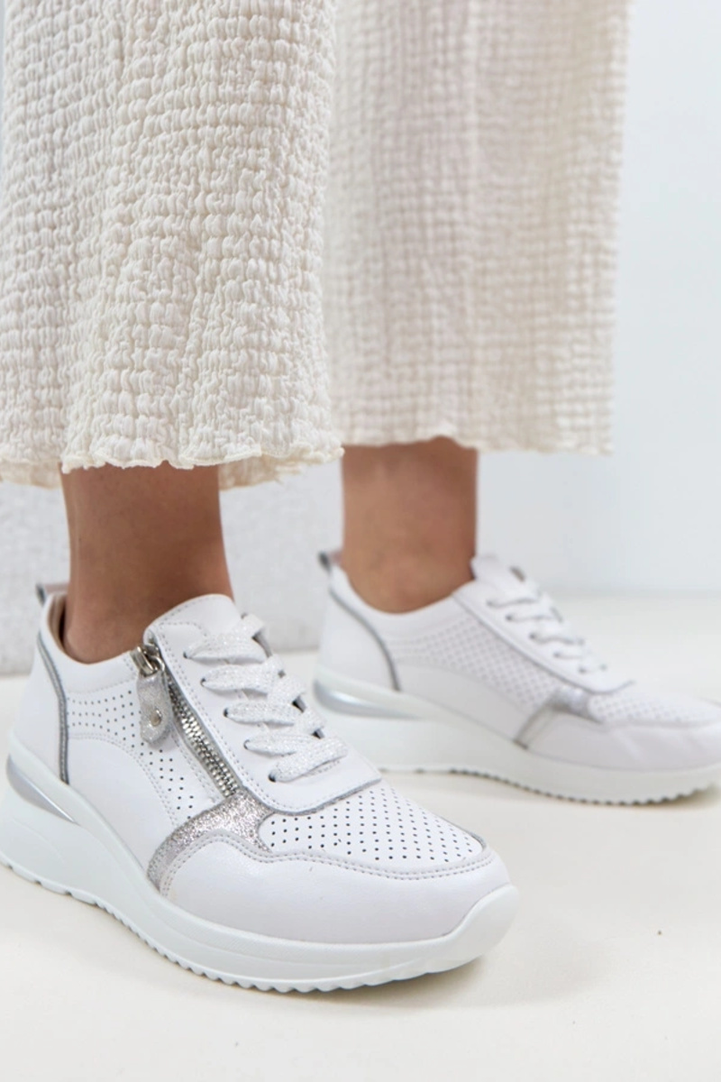 Białe Skórzane Sneakersy Na Krytej Koturnie Cambell