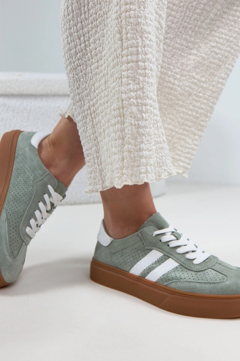 Zielone Skórzane Sneakersy Na Platformie Cambell