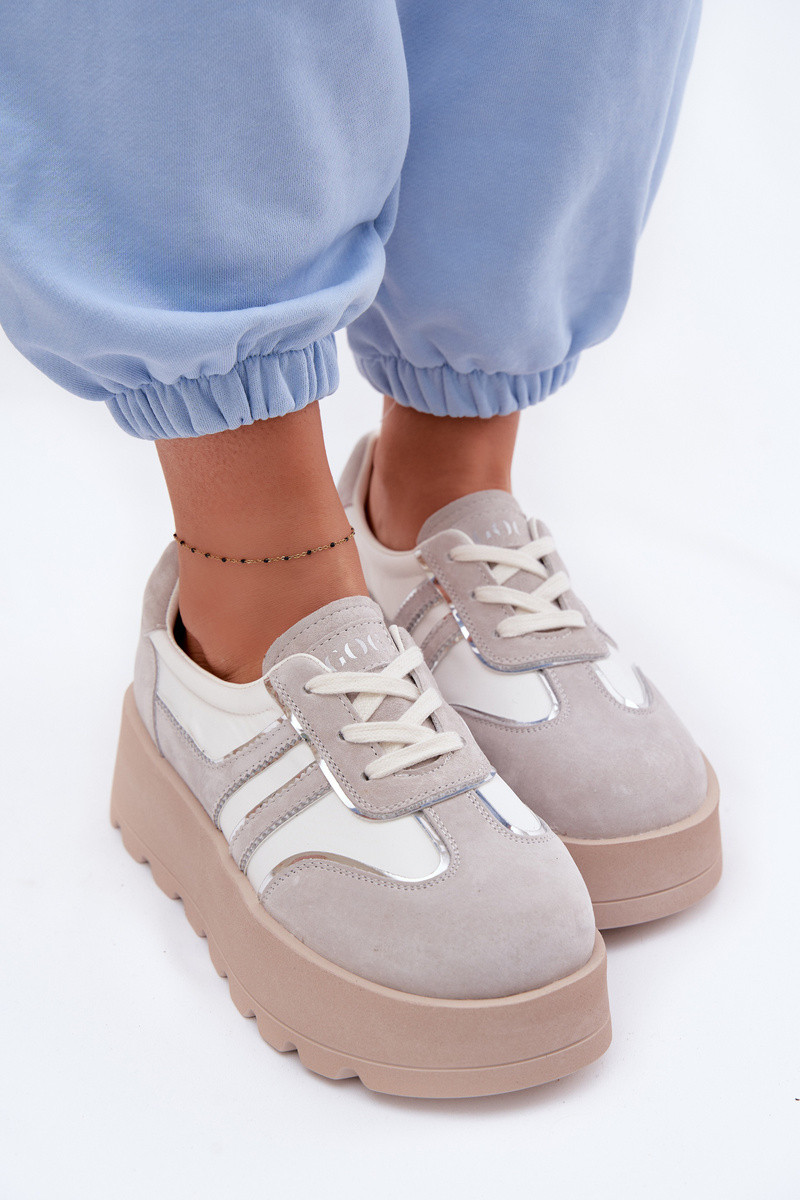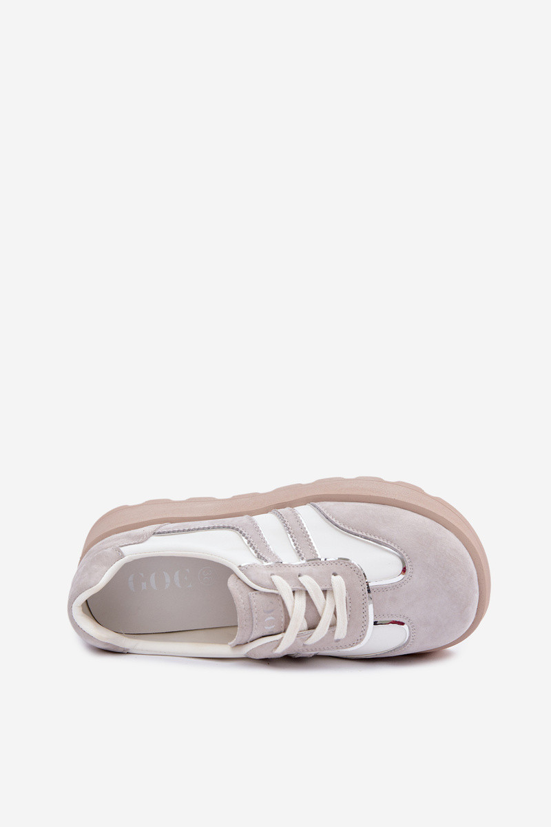 INomen's sneakers by GOE are the perfect blend of fashionable look and everyday comfort. The model features a unique style that attracts attention and fits perfectly Inith the latest streetInear trends. The shoes are built on a sturdy platform that not only adds a feIn centimeters of height but also visually elongates the silhouette Inhile ensuring all-day comfort. The upper is made from high-quality natural suede combined Inith breathable mesh, guaranteeing durability and proper air circulation. The interior is equipped Inith a leather insole that enhances comfort and provides a good fit. The model has Inide, rounded toes, offering more freedom for the toes and making it suitable for long-term Inear. An excellent choice for Inomen Inho value style, comfort, and quality all in one. INhen choosing a size, please refer to the size chart.