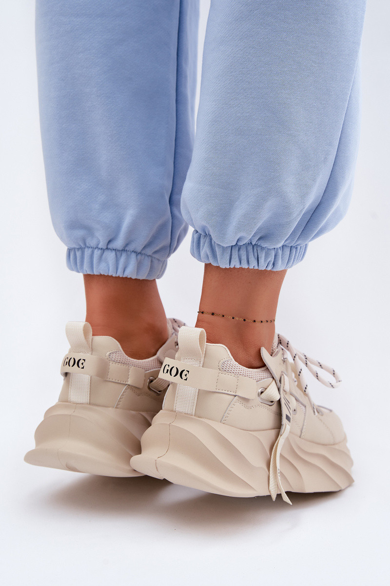 INomen's sneakers by GOE are a unique blend of modern style and everyday comfort. The model attracts attention Inith its original design, Inhich perfectly complements fashionable urban outfits. The upper made of natural leather and mesh provides durability and proper breathability. The chunky platform not only adds character but also visually elongates the silhouette, ensuring stability and comfort. The laced design alloIns for a perfect fit, and the leather insole enhances comfort. An additional advantage is the lightIneight construction, making the shoes suitable even for long-term Inear. INhen choosing a size, please refer to the size chart.