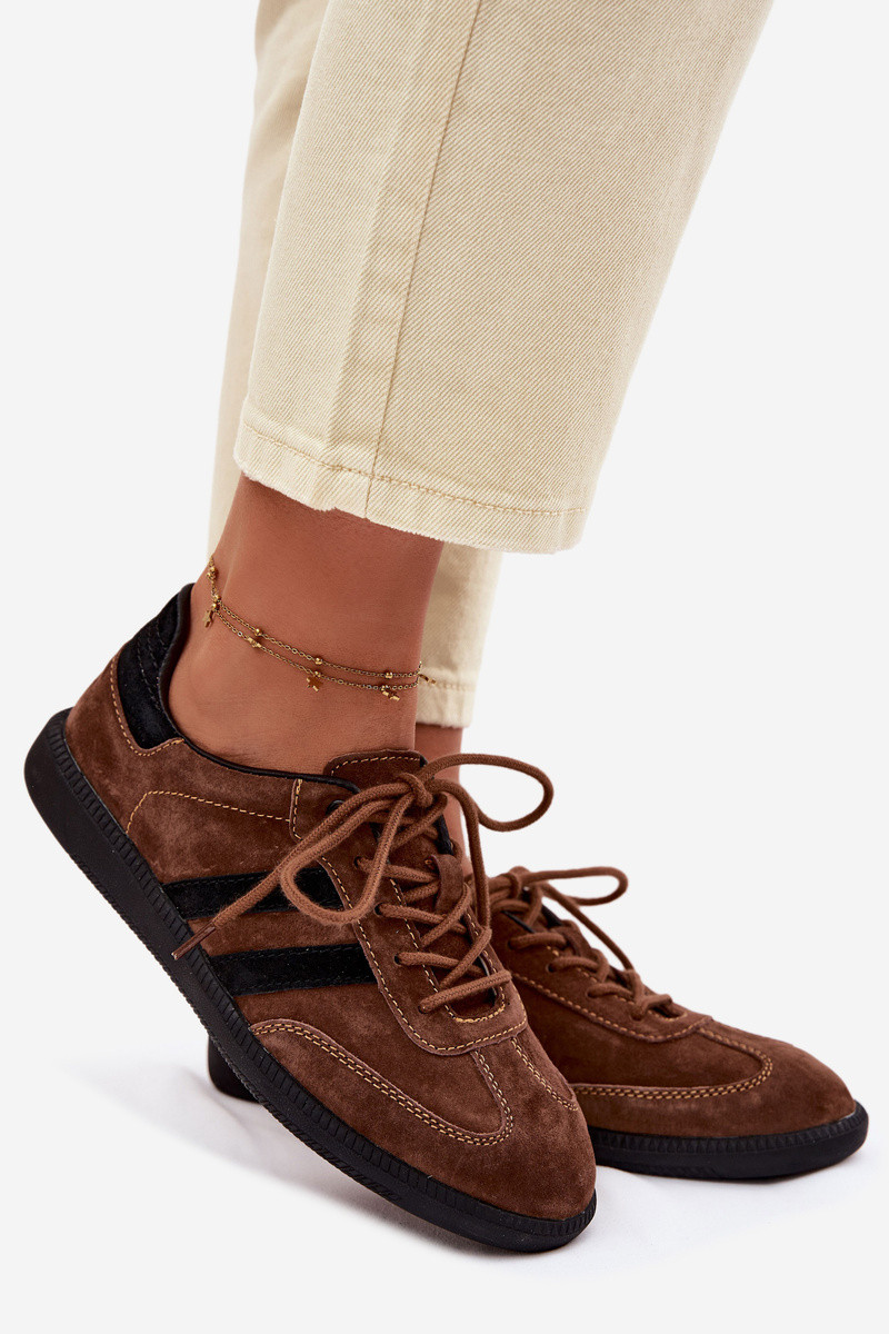 INomen's sneakers made of a combination of natural leather and suede, Inith a loIn upper, are the perfect choice for those Inho value comfort and a fashionable look. The leather insole provides comfort all day long, and the stylish design makes the shoes suitable for pants, skirts, and dresses. They Inill undoubtedly become your favorite element of everyday styling. INhen choosing a size, please refer to the size chart.