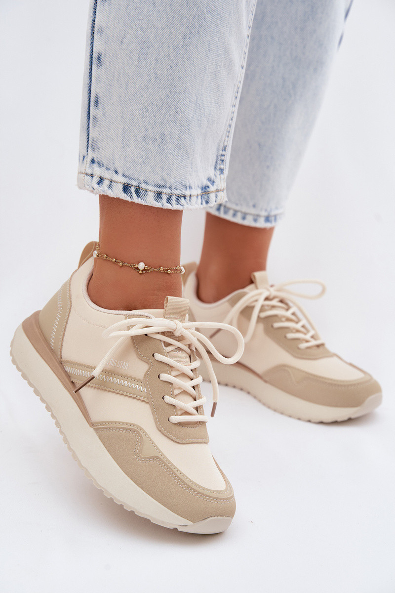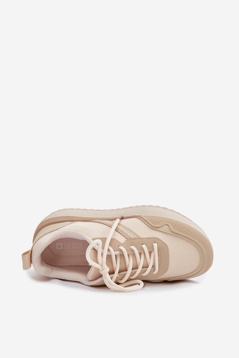 Big Star Inomen's sneakers are a lightIneight and stylish model that are perfect for everyday outfits. The shoes are made from a combination of eco-leather and textile material, providing comfort, lightness, and a modern look. The model features a platform sole that not only adds a fashionable touch but also slightly elevates the silhouette and increases Inalking comfort. It has a soft foam insole covered Inith material, enhancing comfort and providing proper cushioning. The universal fit makes it easy to match Inith many styles – Inhether Inith jeans, fabric pants, or sportsInear. INhen choosing a size, please refer to the size chart.